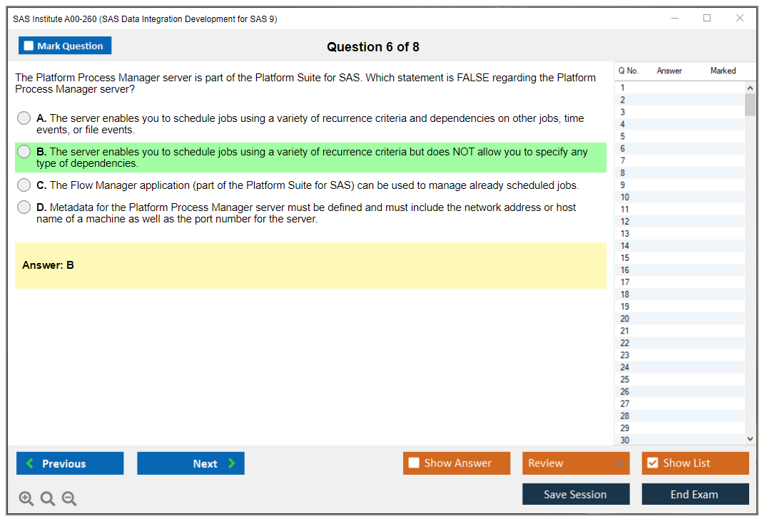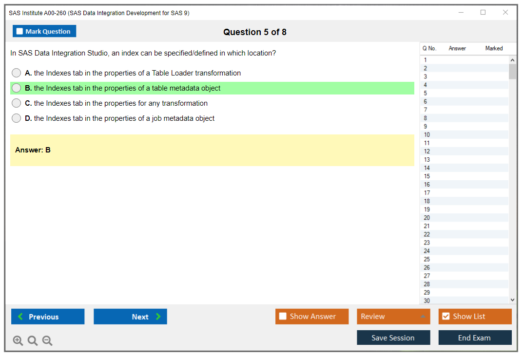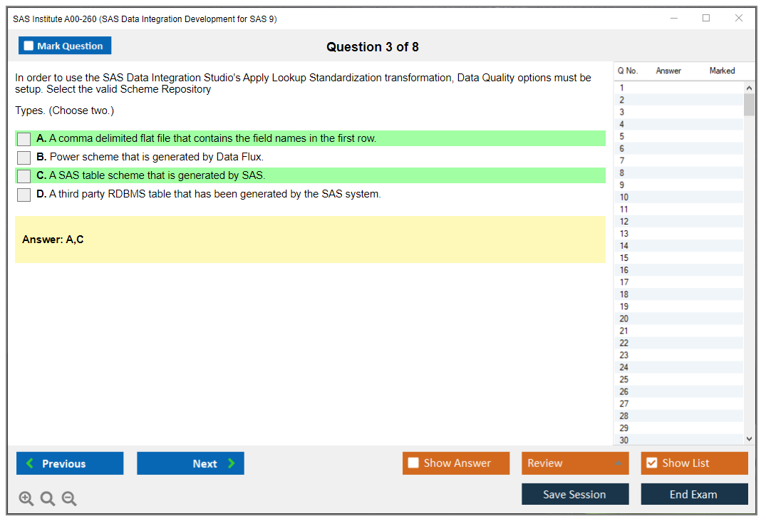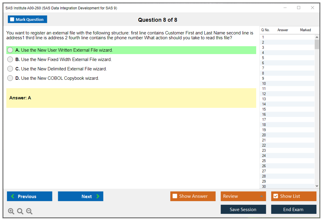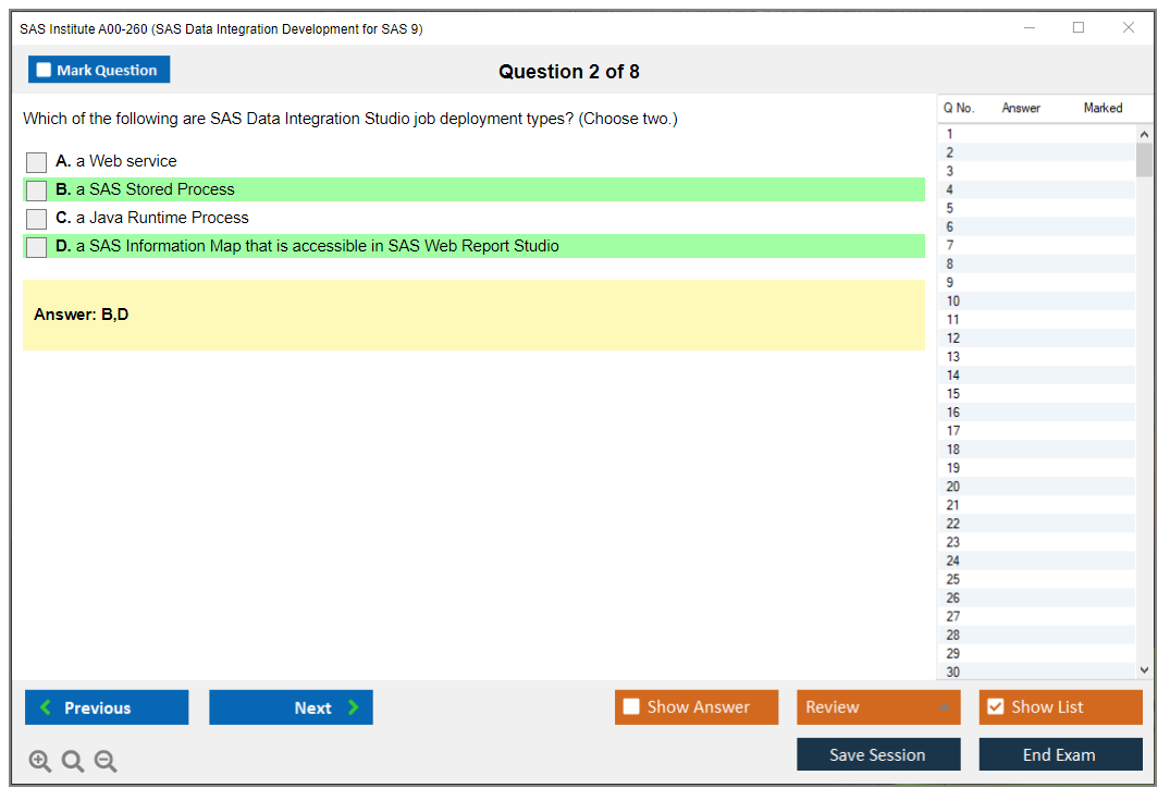 The question format of the SAS Institute A00-260 Exam includes multiple-choice and short-answer questions.