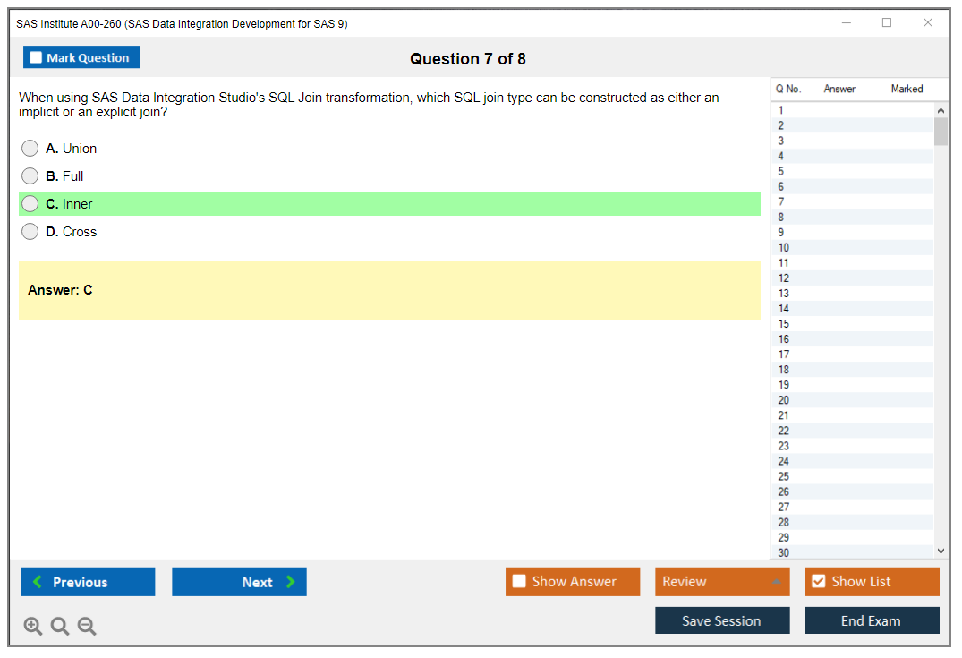 The SAS Institute A00-260 Exam is a certification exam for professionals seeking to demonstrate their proficiency in data integration development using SAS Data Integration Studio. It covers various aspects of data integration, including data management, data warehousing, and ETL processes.