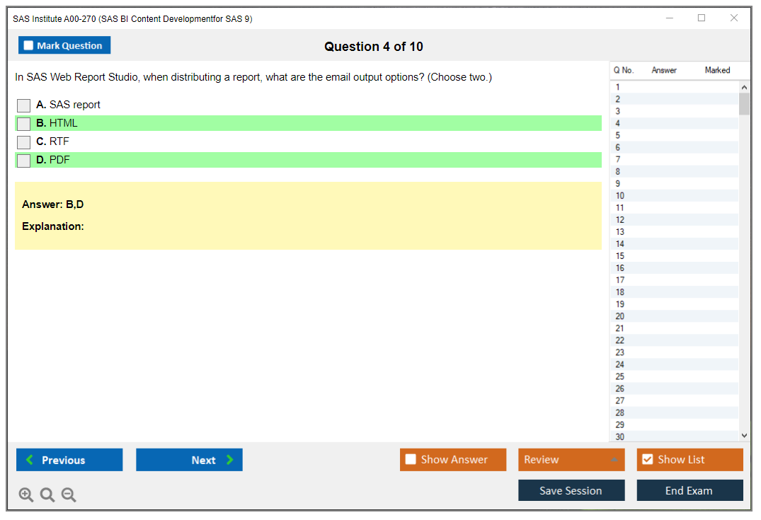 The question format of the SAS Institute A00-270 Exam includes multiple-choice questions, short-answer questions, and scenario-based questions.