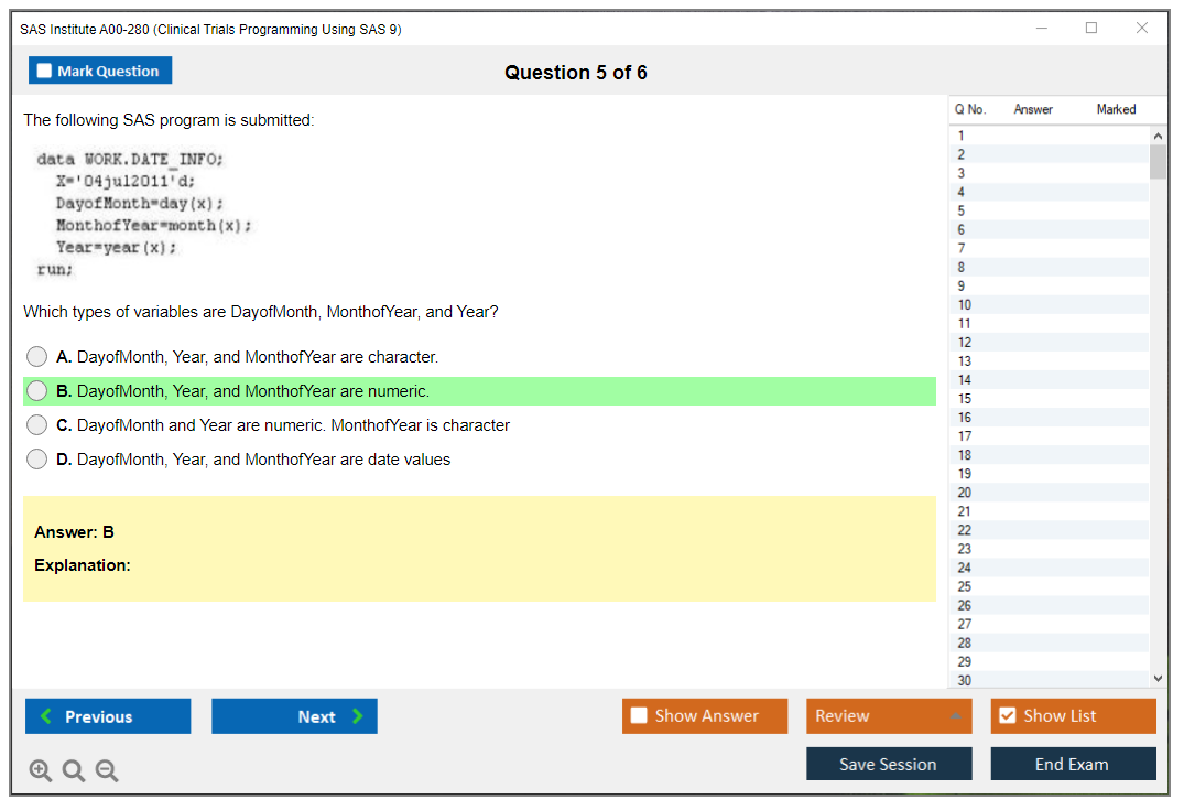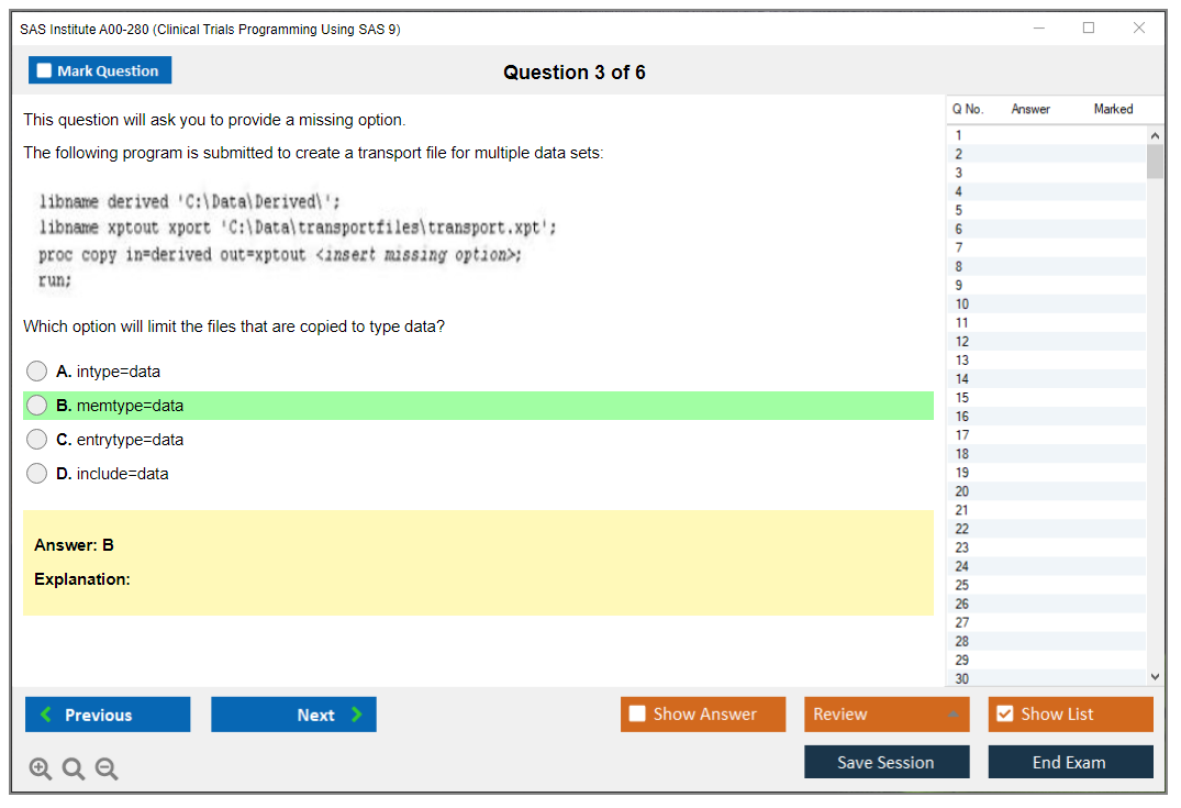 What are the Sample Questions of SAS Institute A00-280 Exam?