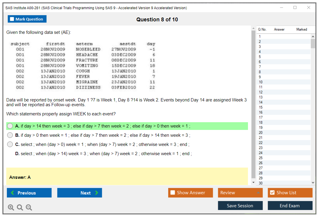 A00-281 (SAS Clinical Trials Programming Using SAS 9 - Accelerated Version 9 Accelerated Version) PDF + Test Engine