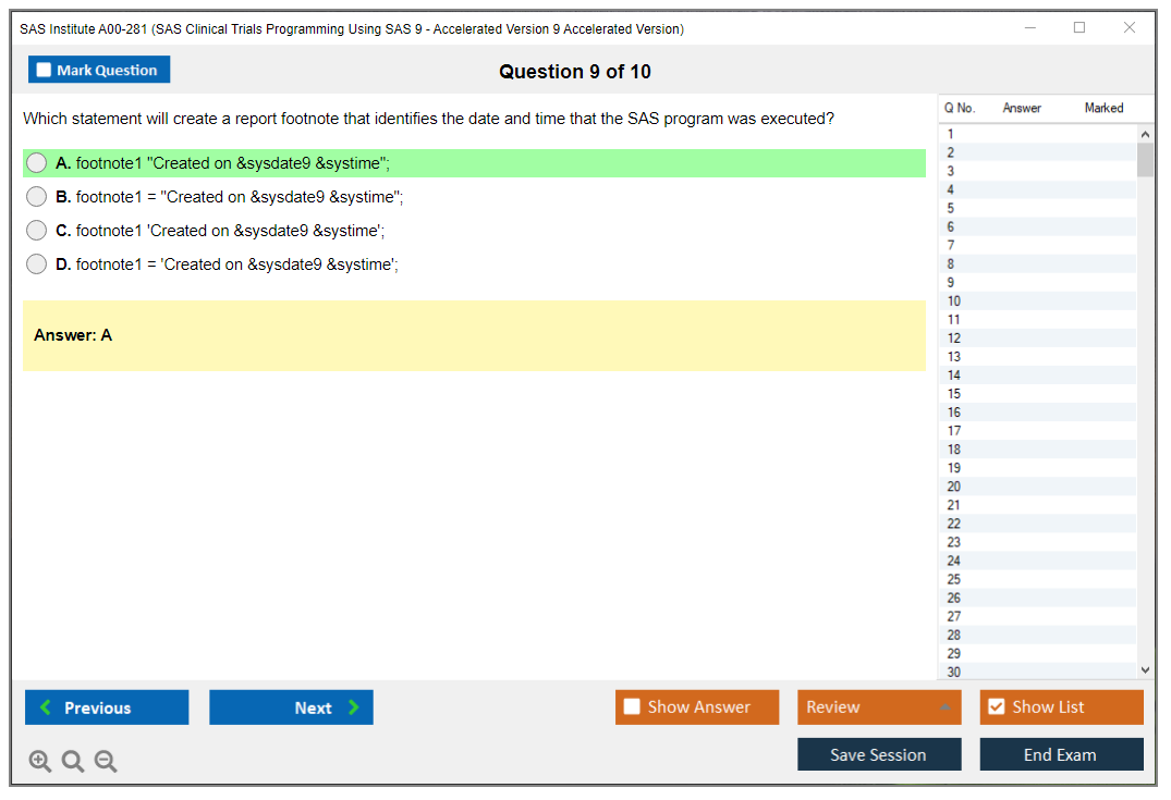 DumpsBoss was a lifesaver for my SAS Clinical Trials Programming certification! Their practice exams perfectly mirrored the real exam format, and the explanations were clear and concise. I felt confident and prepared on test day, thanks to DumpsBoss. Highly recommend!