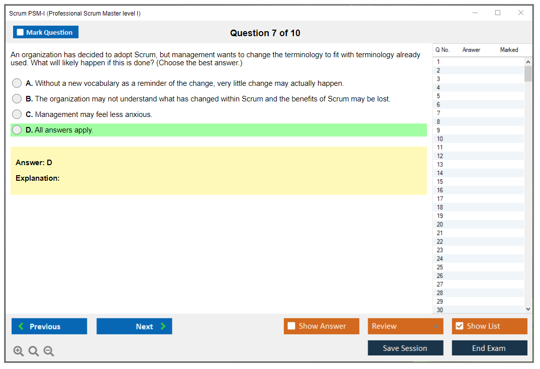 What are the Sample Questions of Scrum PSM-I Exam?