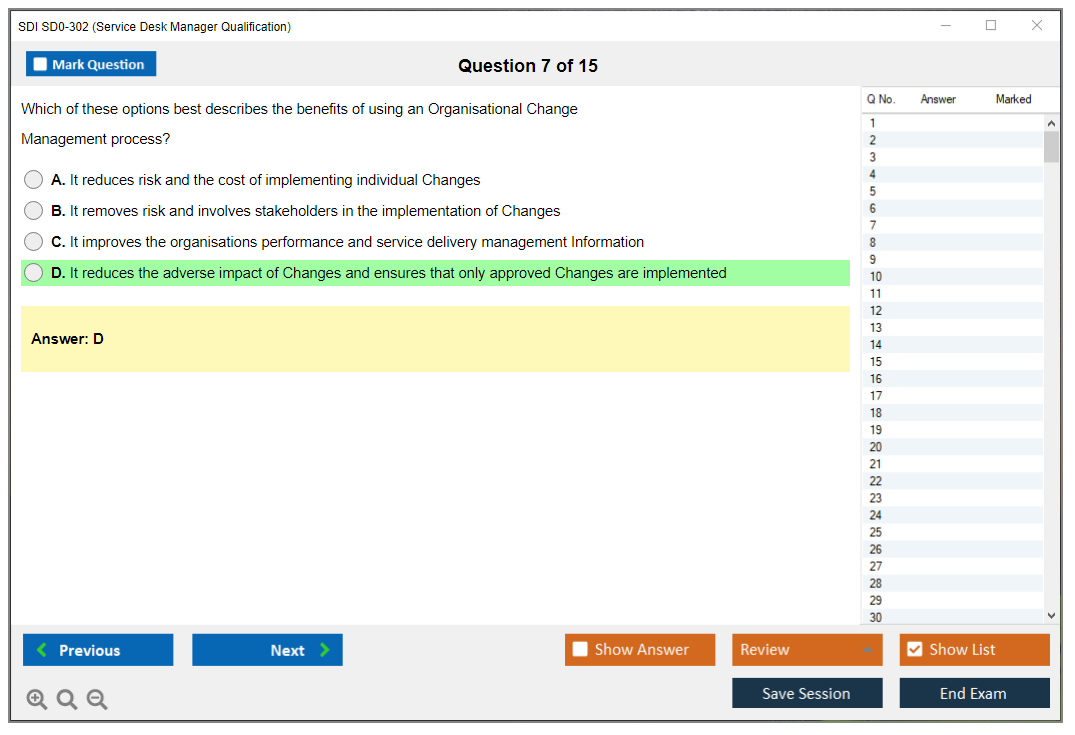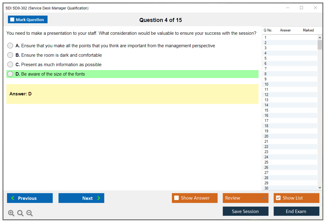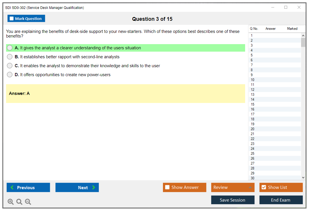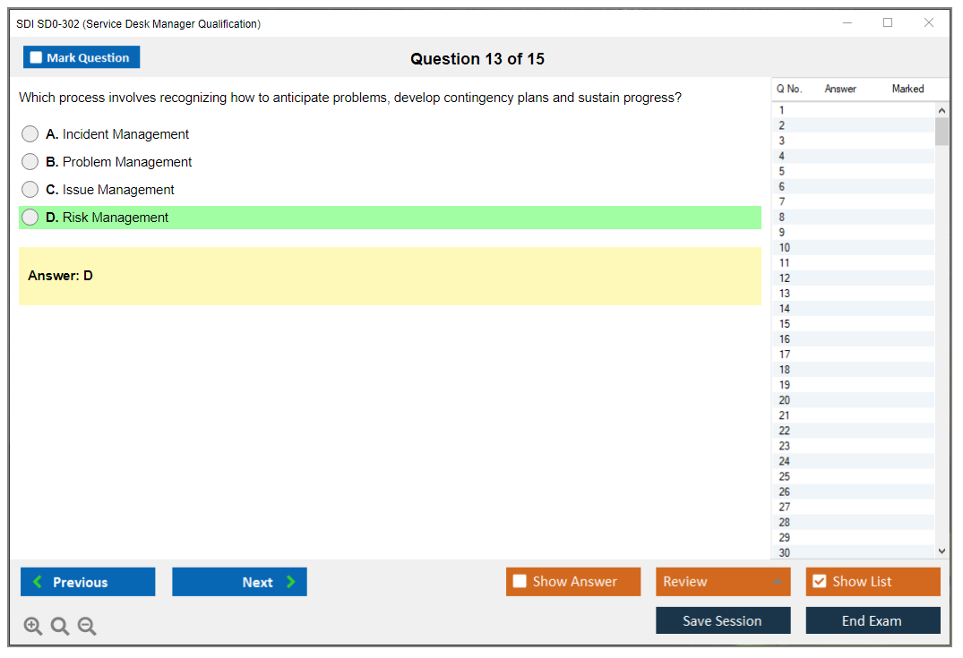 The SDI SD0-302 Exam, also known as the Service Desk Manager Qualification, evaluates a candidate's ability to manage a service desk effectively. It is aimed at professionals who are responsible for overseeing service desk operations and ensuring the delivery of high-quality service.