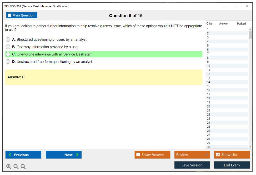 The SDI SD0-302 Exam is part of the SDI certification track, which includes various levels of service desk qualifications, from analyst to manager.