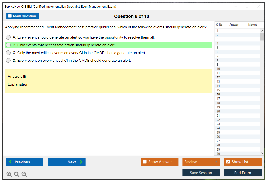 The ServiceNow CIS-EM (Certified Implementation Specialist-Event Management) Exam is designed to certify that a candidate has the necessary skills and knowledge to implement, configure, and maintain the ServiceNow Event Management application.