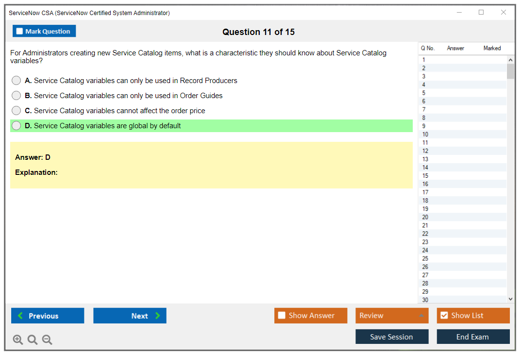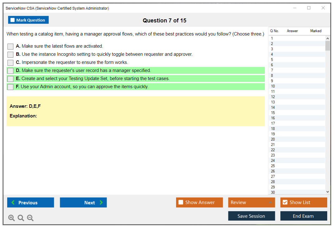 DumpsBoss, você acertou em cheio com CSA! Os recursos excepcionais e o conteúdo estruturado do site são uma prova de seu compromisso com a excelência na administração do ServiceNow.