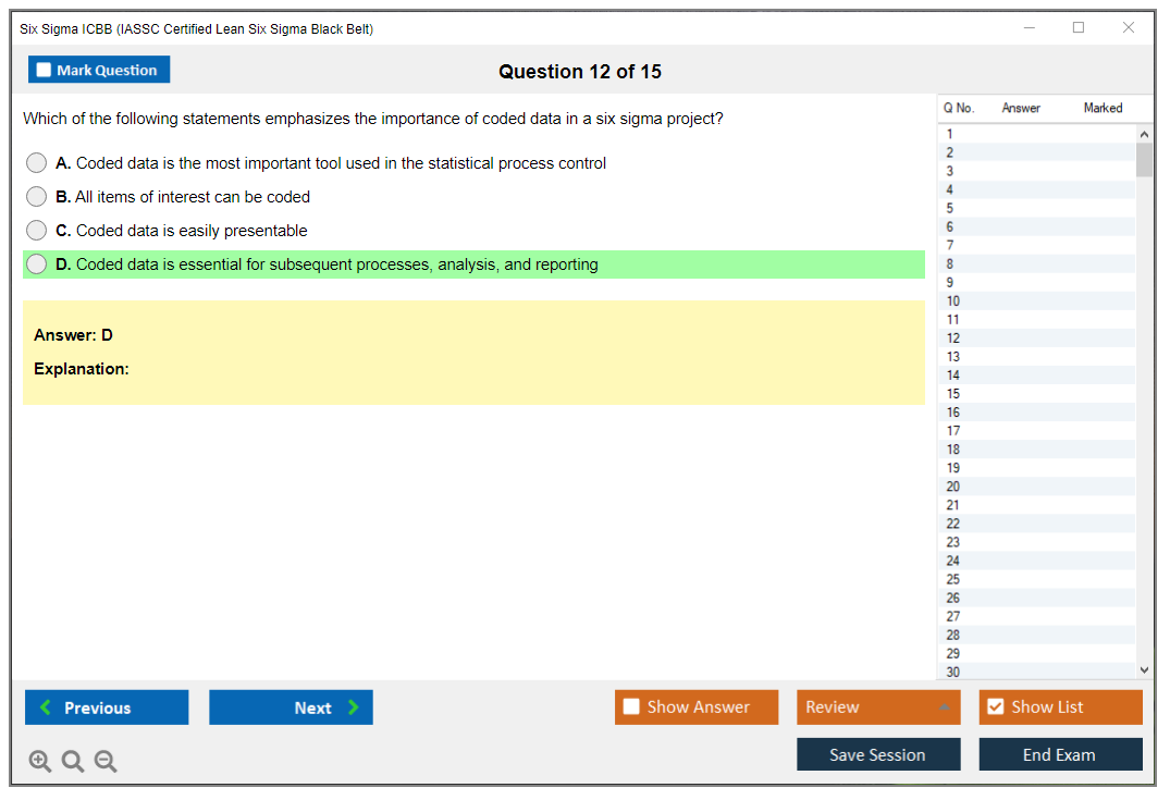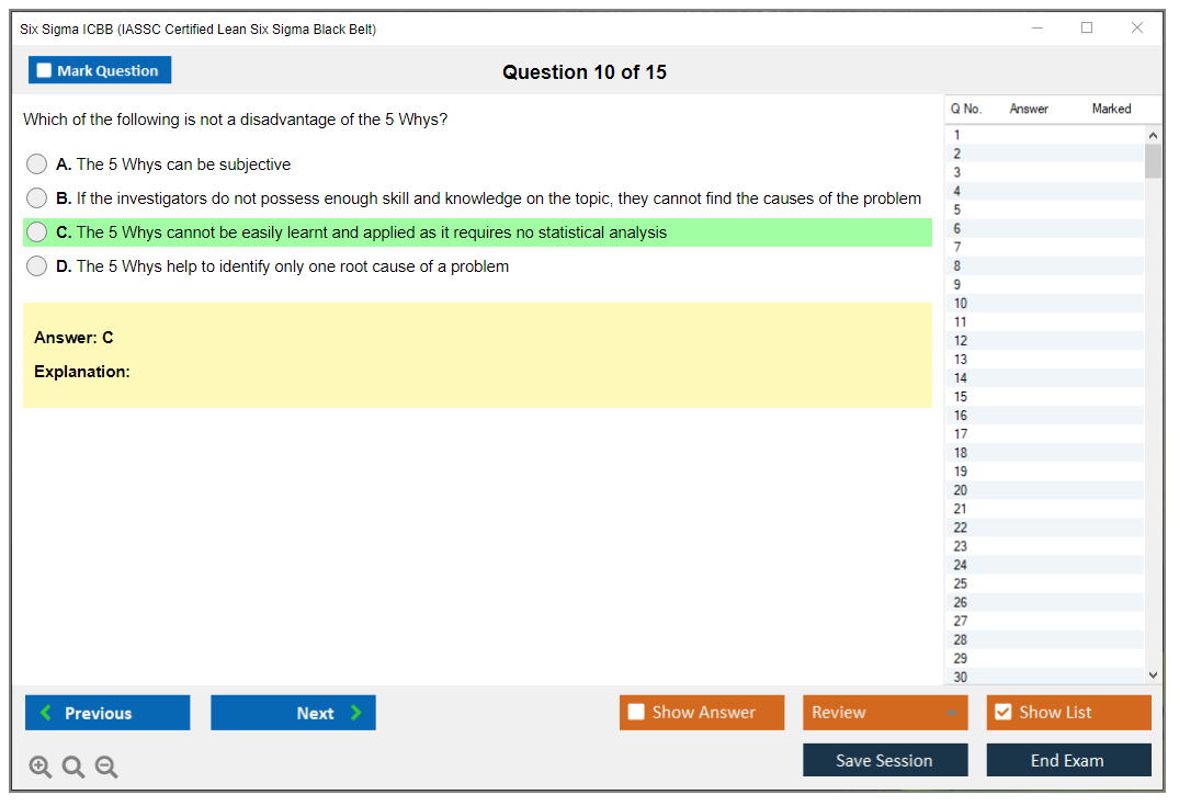 The Six Sigma ICBB (IASSC Lean Six Sigma – Black Belt) Exam is a certification exam designed to validate an individual's expertise in Lean Six Sigma principles and methodologies. It confirms the ability to lead complex projects and drive organizational improvements.