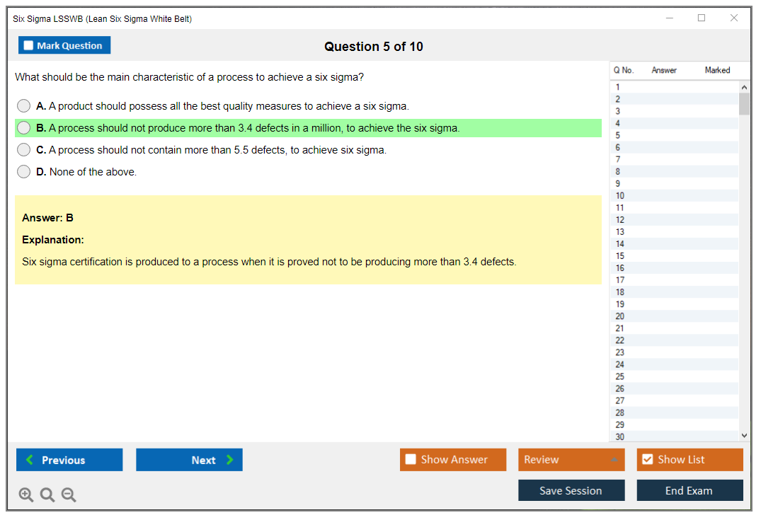 30 Customers Passed Six Sigma LSSWB Exam