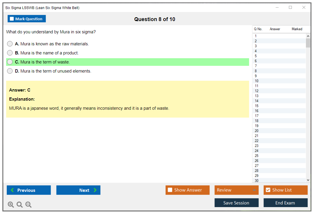LSSWB (Lean Six Sigma White Belt) PDF, Test Engine and Training Course