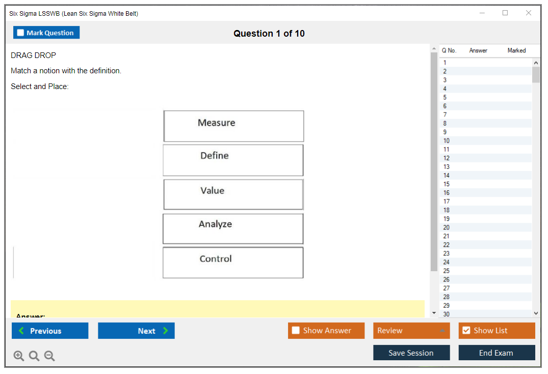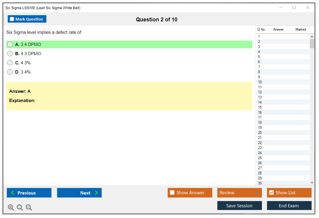 DumpsBoss offers an excellent Six Sigma White Belt Exam Questions and Answers PDF, complete with clear answers and explanations. A must-have for anyone serious about passing the certification exam.