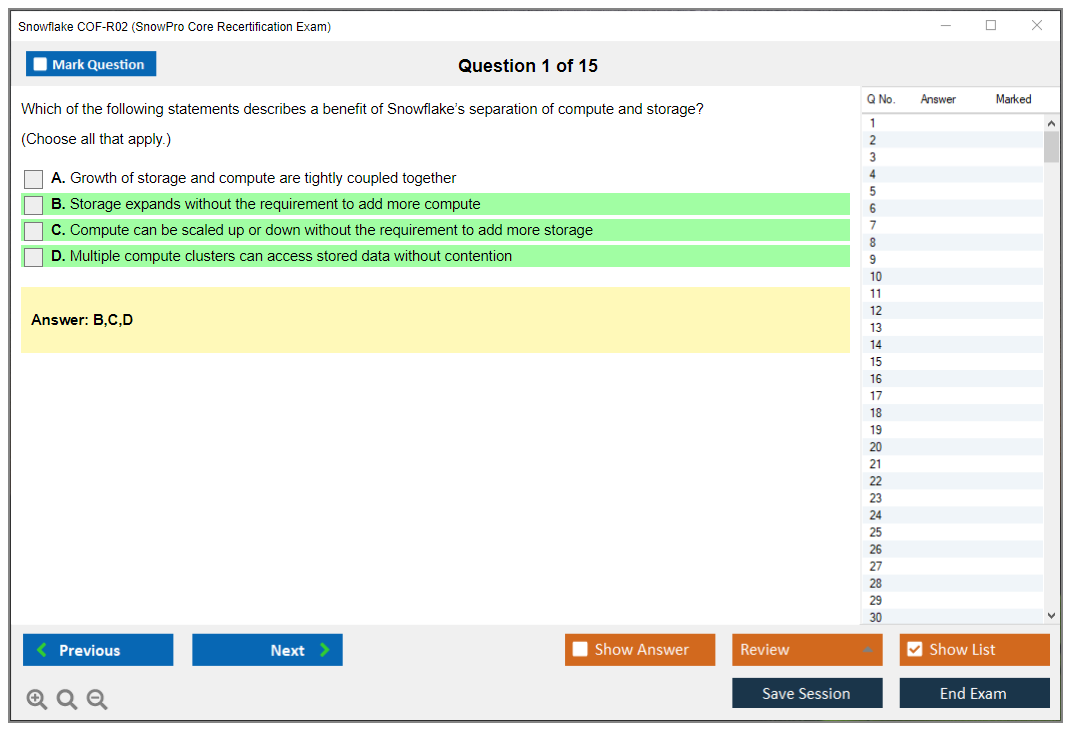 The question format of the Snowflake COF-R02 Exam includes multiple-choice and multiple-select questions.