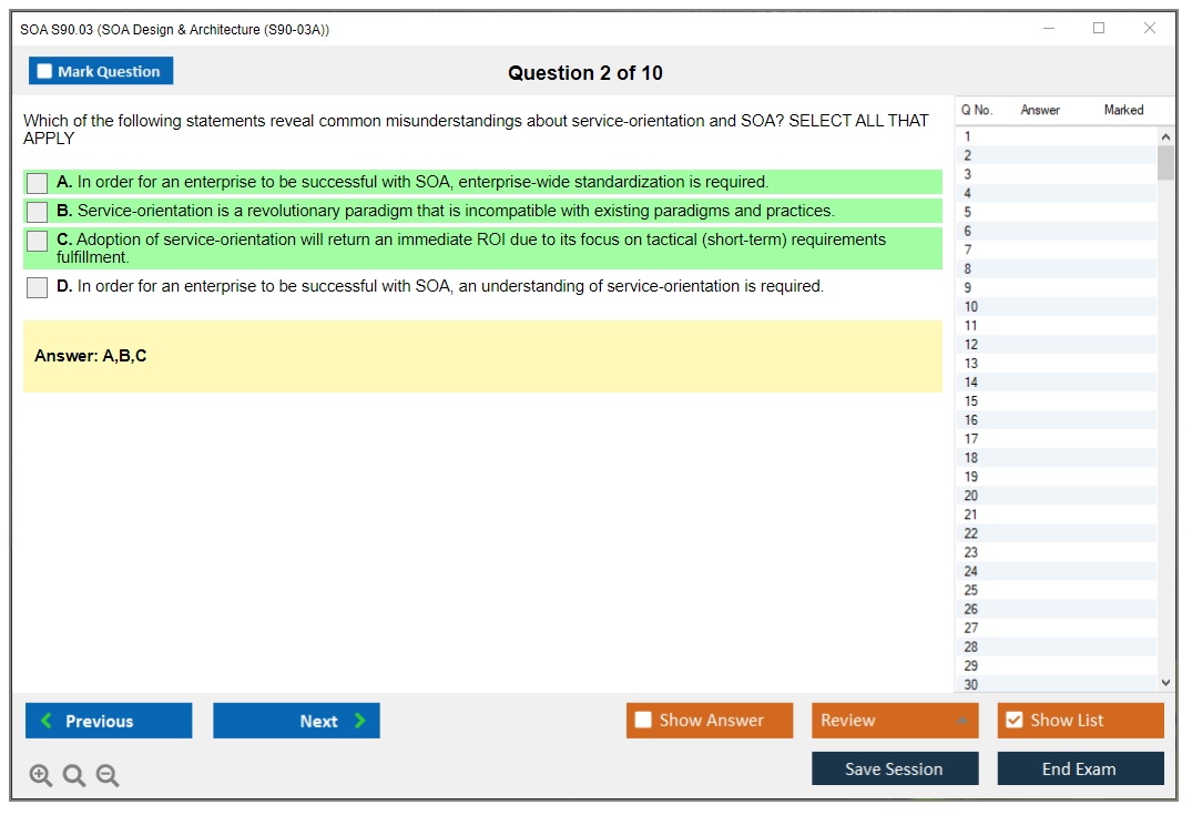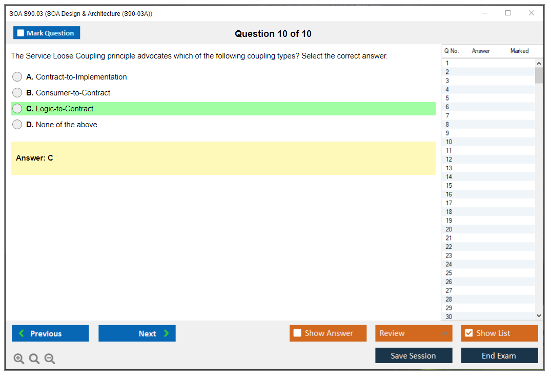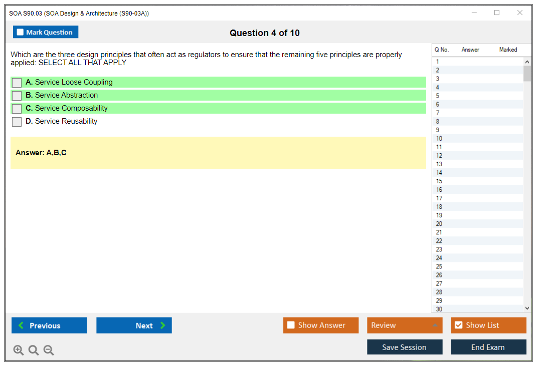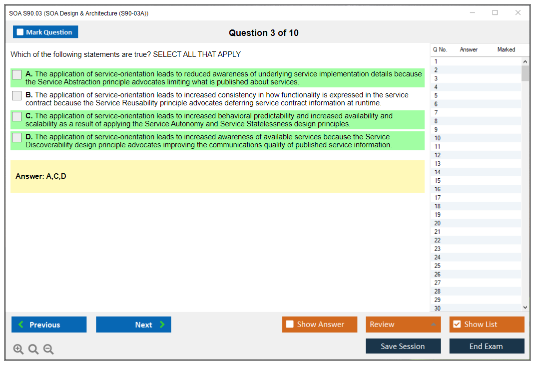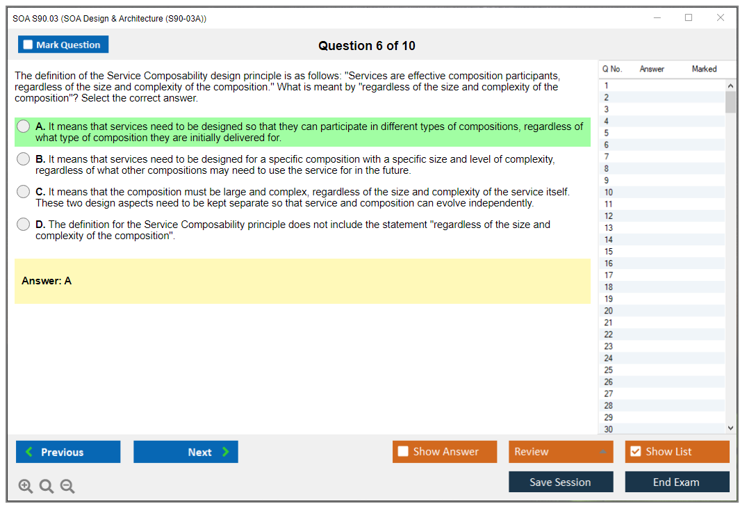 The SOA S90.03 (SOA Design & Architecture) Exam is a certification exam designed to test the knowledge and skills of individuals in service-oriented architecture (SOA) design and architecture principles.