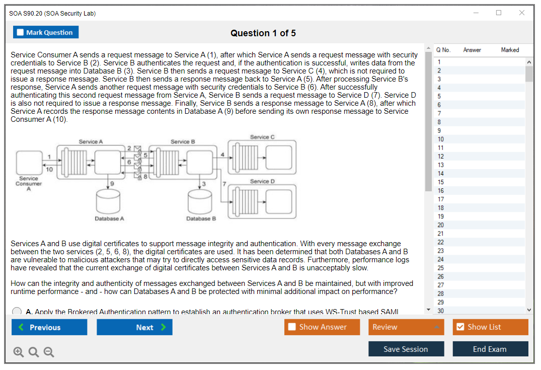 The SOA S90.20 (SOA Security Lab) Exam is a specialized certification exam that focuses on the security aspects of Service-Oriented Architecture (SOA). It is designed to test the candidate's knowledge and skills in implementing and managing security within SOA environments.
