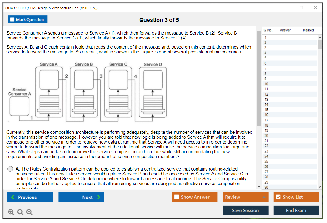 The question format of the SOA S90.09 Exam is practical and scenario-based, requiring candidates to perform tasks and solve problems related to SOA design and architecture.