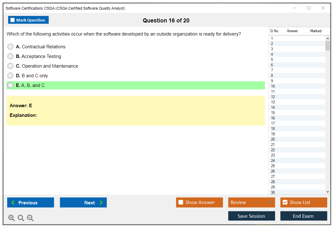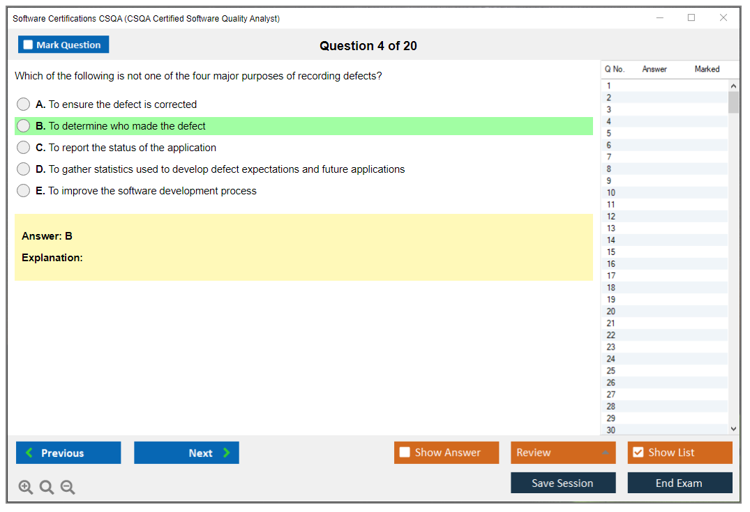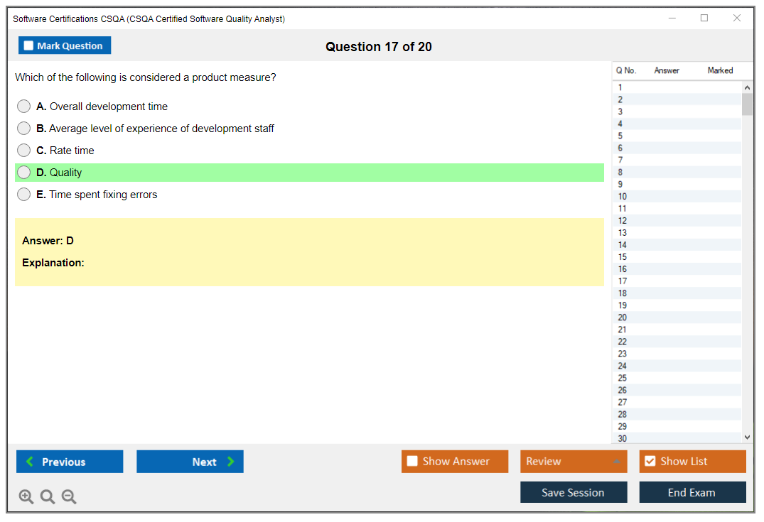What are the Sample Questions of Software Certifications CSQA Exam?