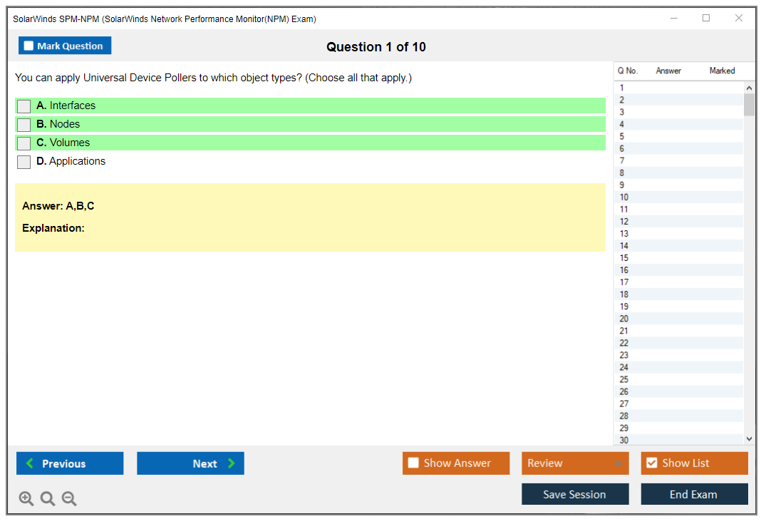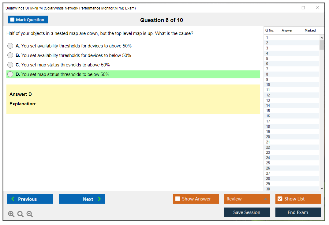 Note: SolarWinds SPM-NPM (SolarWinds Network Performance Monitor(NPM) Exam) will not receive any new updates.