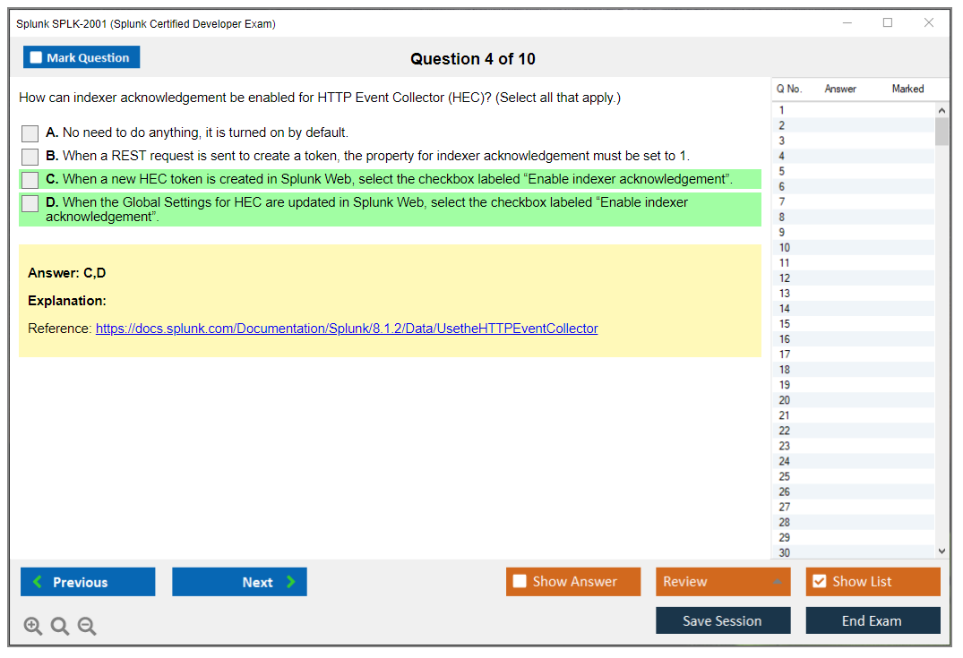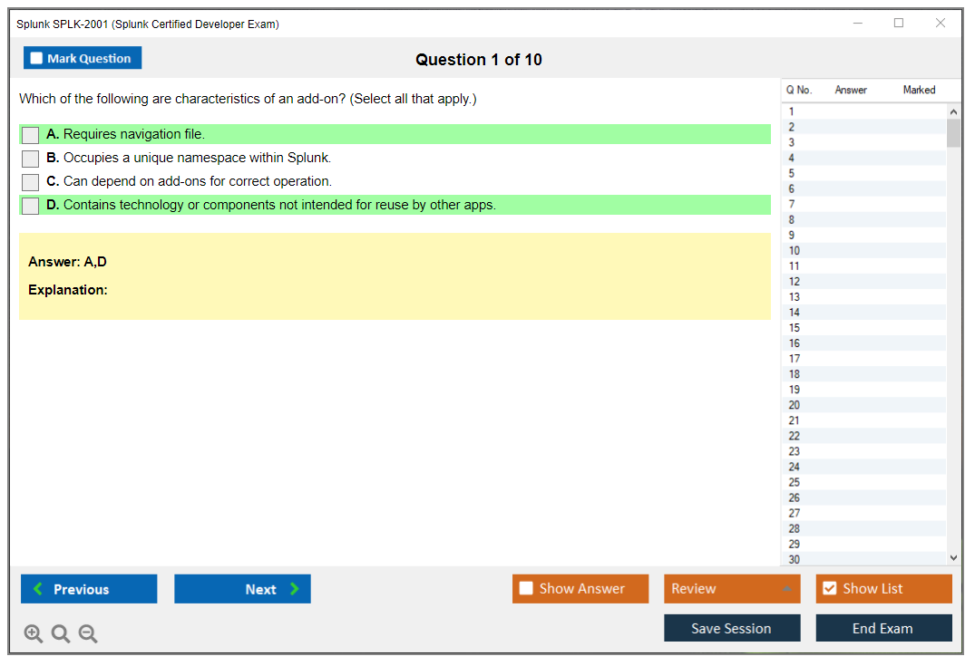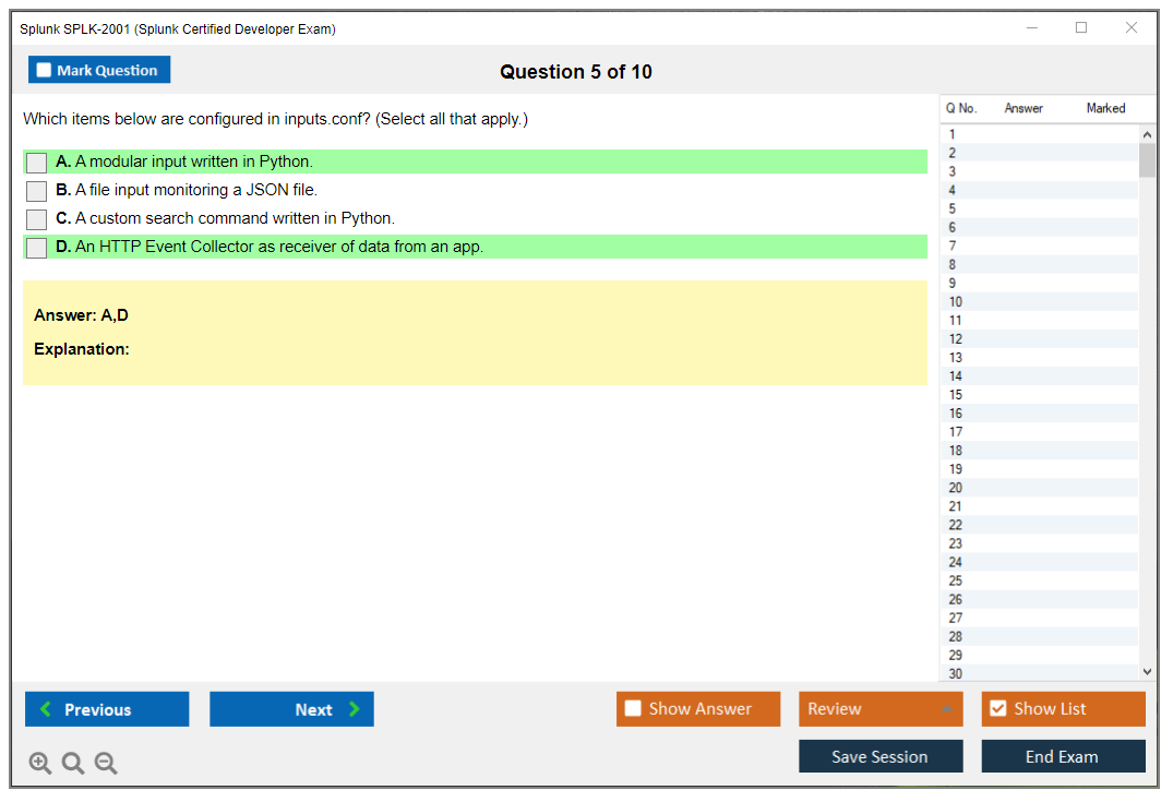 The question format of the Splunk SPLK-2001 exam includes multiple-choice and multiple-select questions.