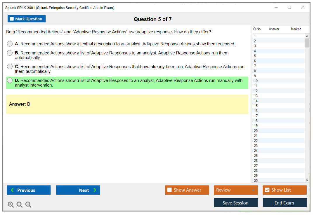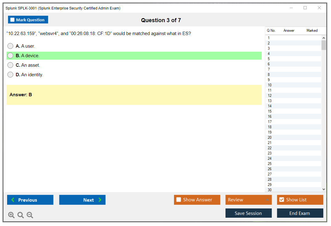 I couldn't have earned my Splunk Enterprise Security Certified Admin Certification without DumpsBoss. Their practice questions are a true reflection of the actual test