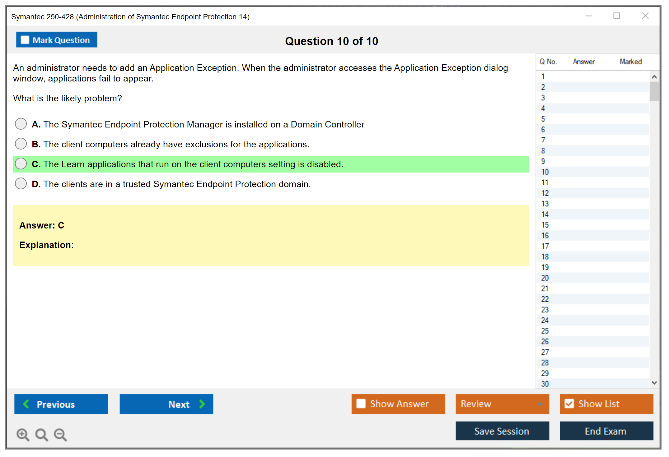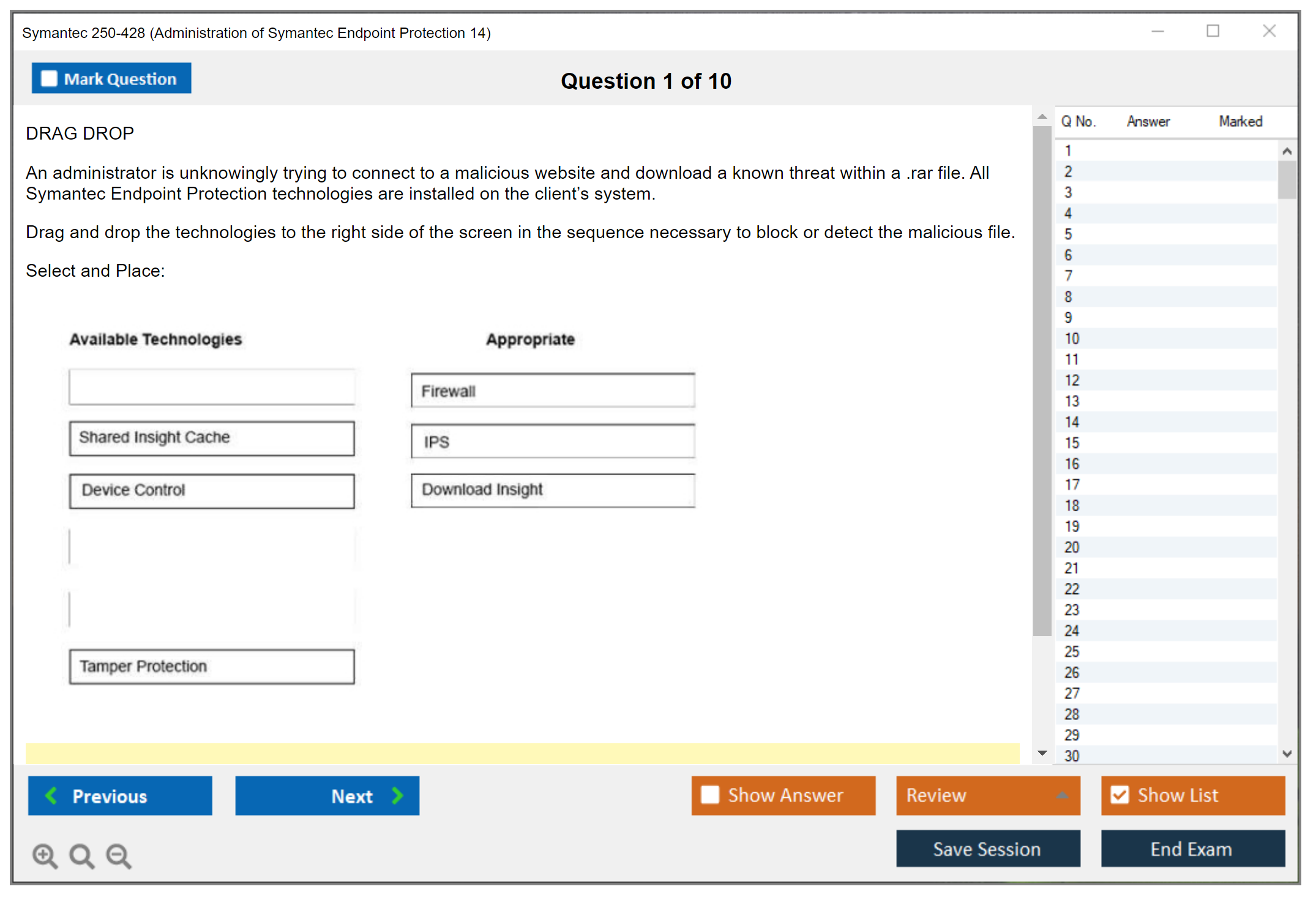 There are no formal prerequisites for the Symantec 250-428 exam, but it is recommended that candidates have experience with Symantec Endpoint Protection 14.