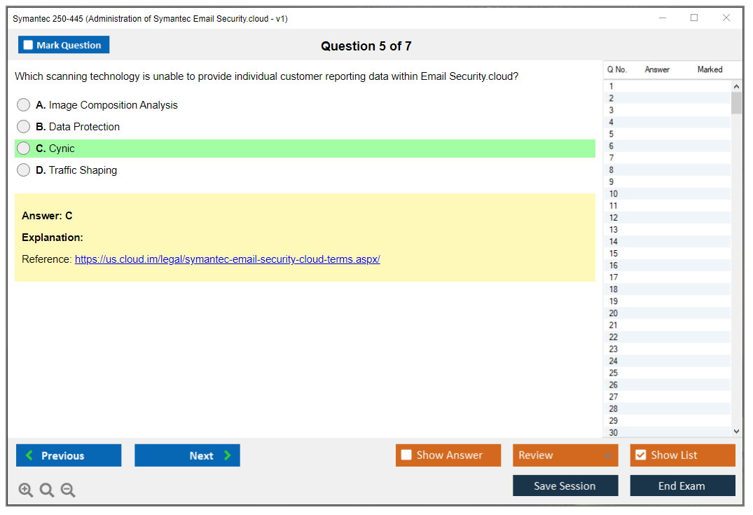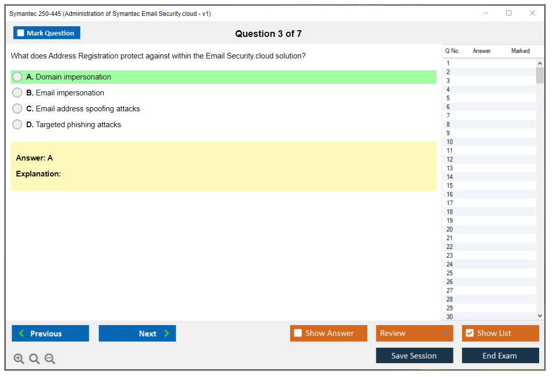 The Symantec 250-445 exam, also known as the Administration of Symantec Email Security.cloud - v1, is designed to validate the skills and knowledge necessary to manage and administer Symantec's Email Security.cloud service.
