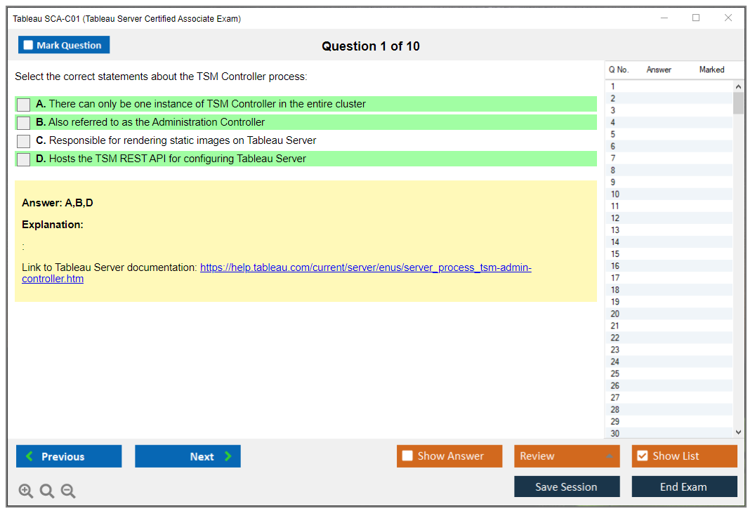 The Tableau SCA-C01 Exam is a certification exam for individuals who want to demonstrate their expertise in managing and maintaining Tableau Server. It tests the candidate's knowledge of server architecture, security, user management, and performance optimization.