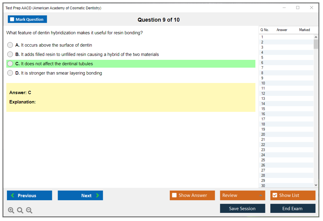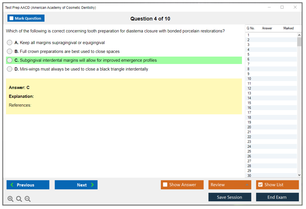 The Test Prep AACD (American Academy of Cosmetic Dentistry) Exam is designed to evaluate the knowledge and skills of dental professionals in the field of cosmetic dentistry. It is a certification exam that assesses the competency of practitioners in providing high-quality cosmetic dental care.