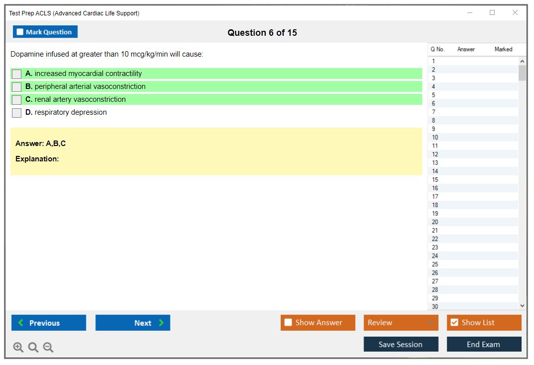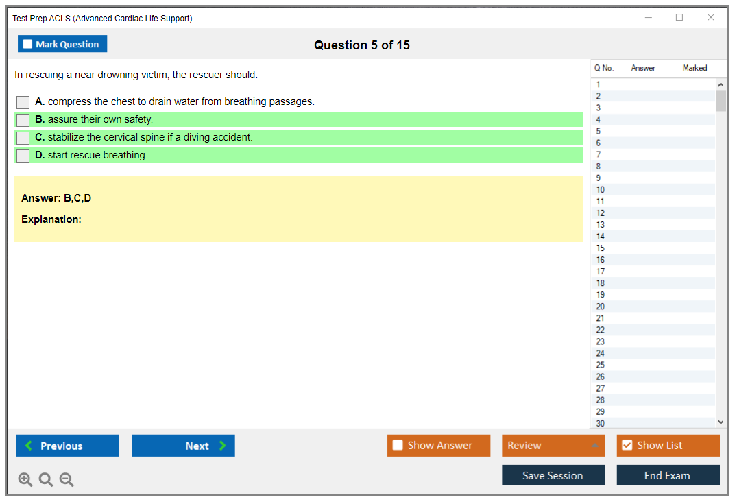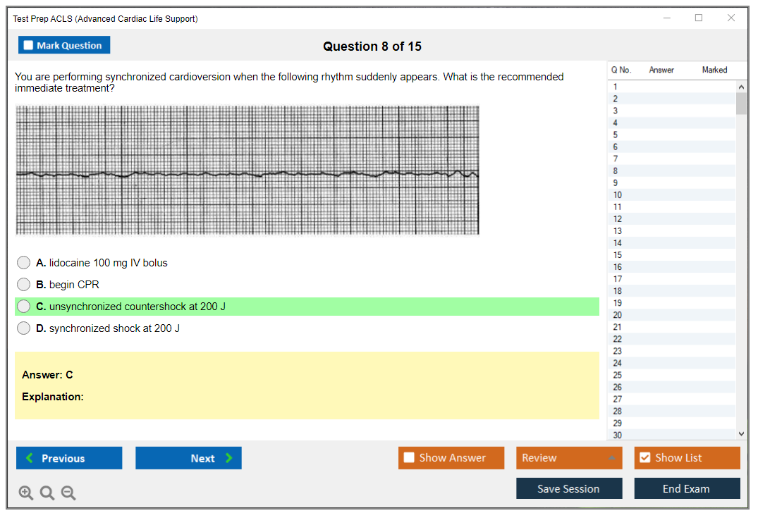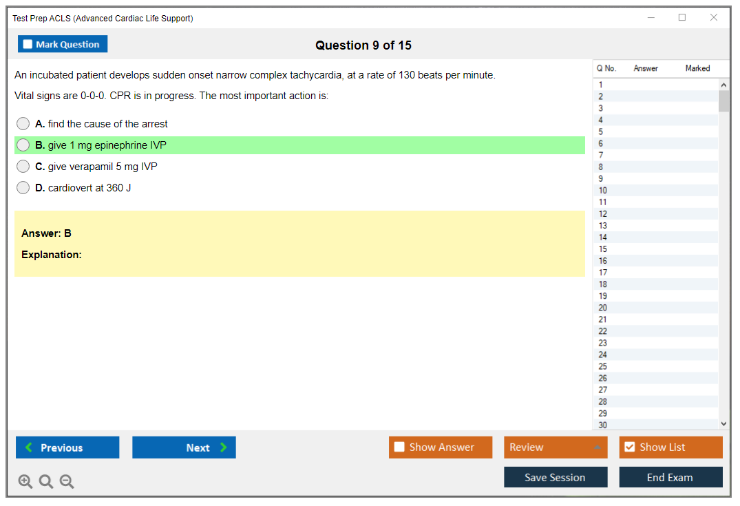 Thanks to DumpsBoss, I conquered the Test Prep ACLS Exam! The study materials are of high quality, and the explanations are crystal clear. Highly recommend DumpsBoss for exam success.