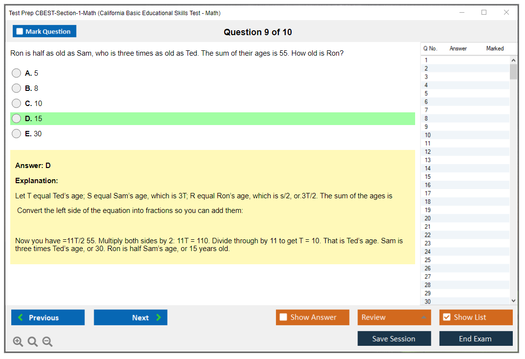 What are the Sample Questions of Test Prep CBEST-Section-1-Math Exam?