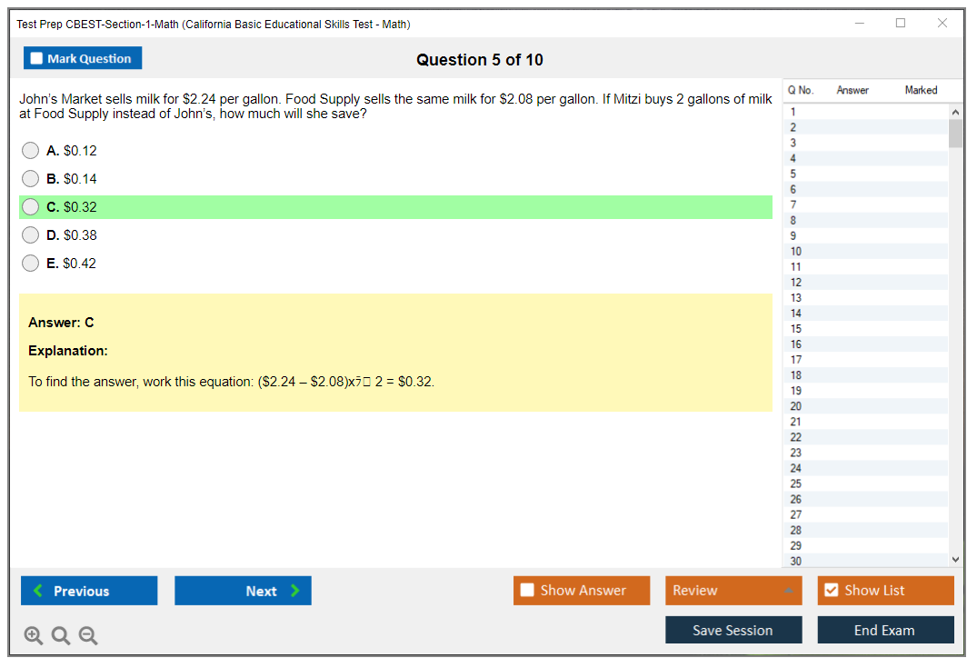 What is the Question Format of Test Prep CBEST-Section-1-Math Exam?