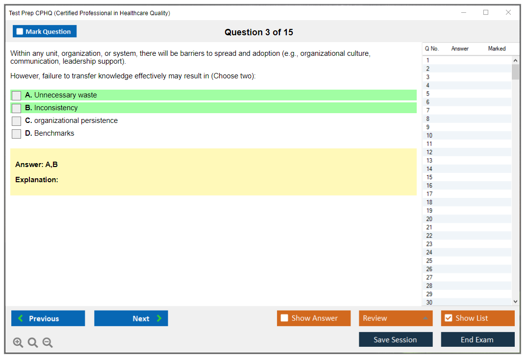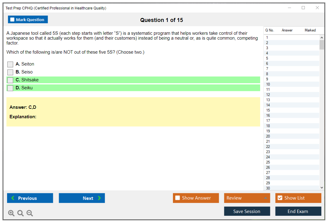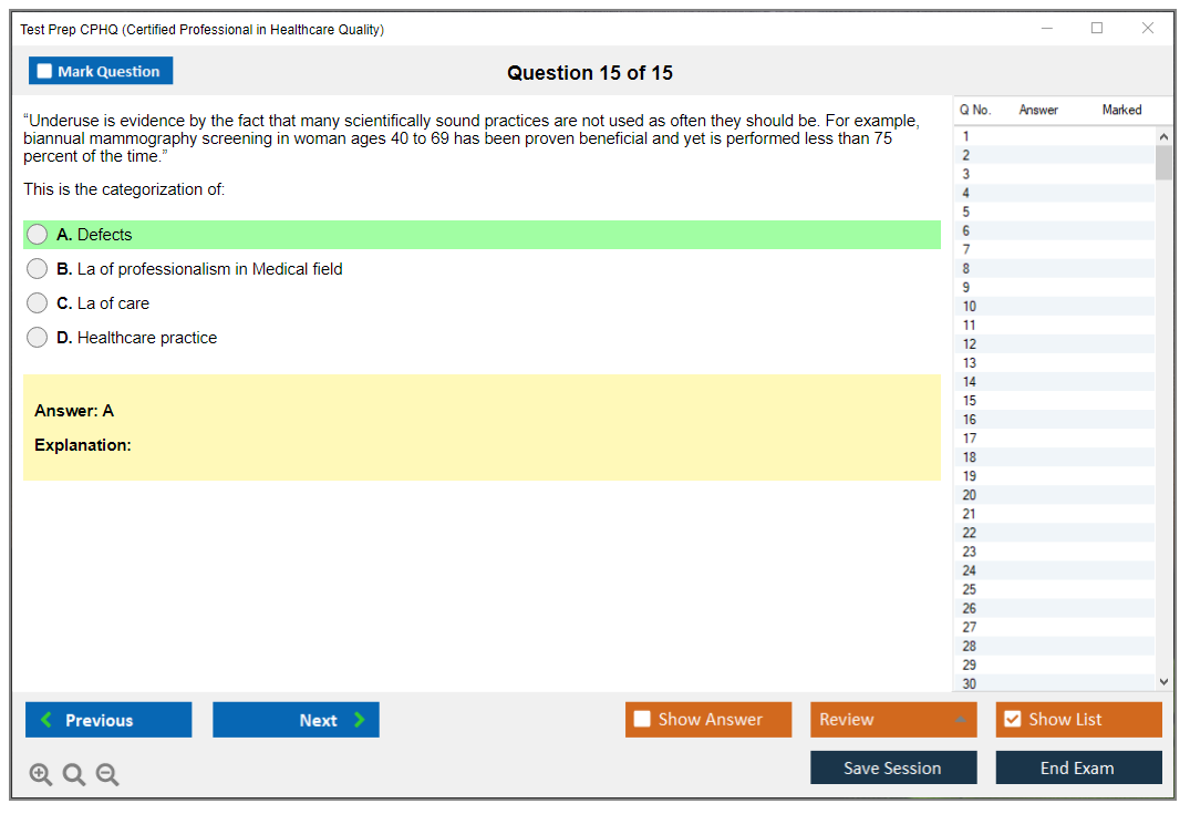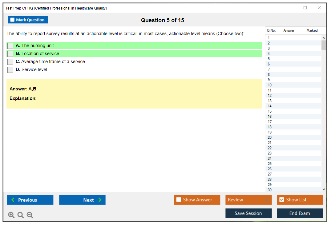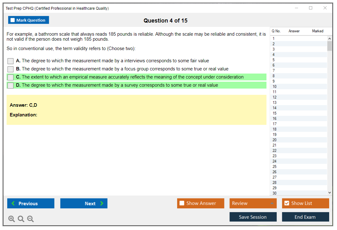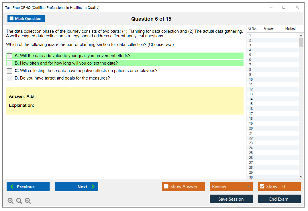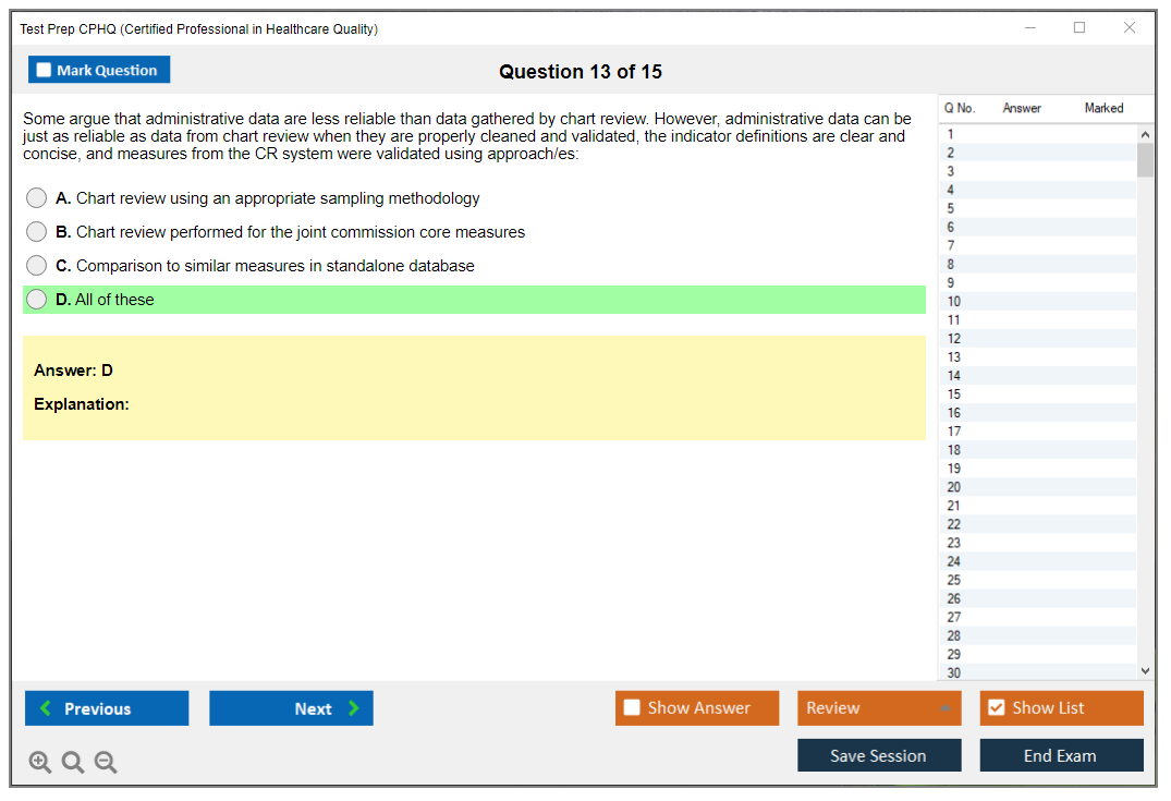 What are the Sample Questions of Test Prep CPHQ Exam?