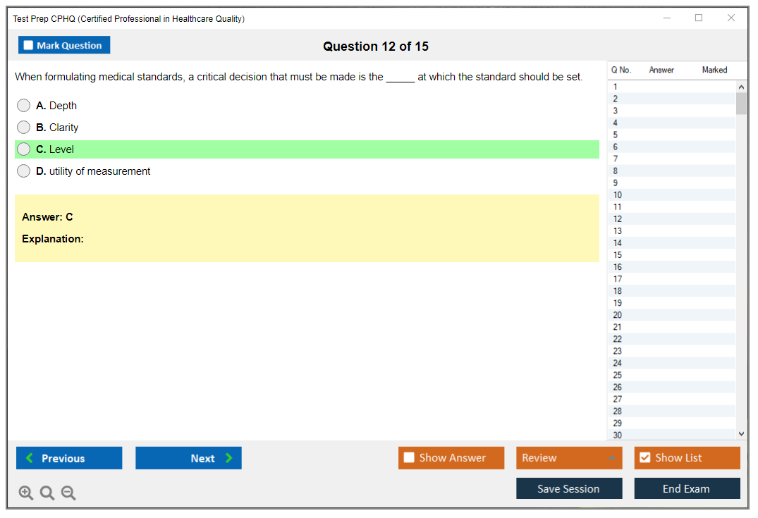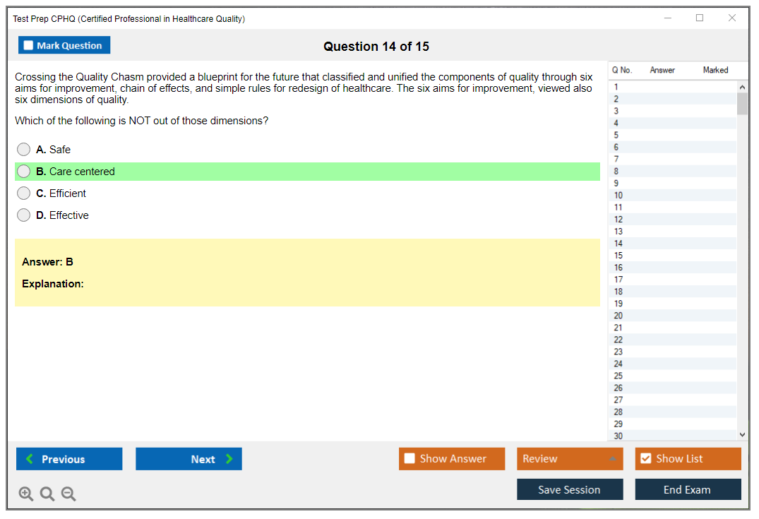 DumpsBoss CPHQ cert materials exceeded my expectations. The detailed explanations and practice questions helped me understand the concepts thoroughly.