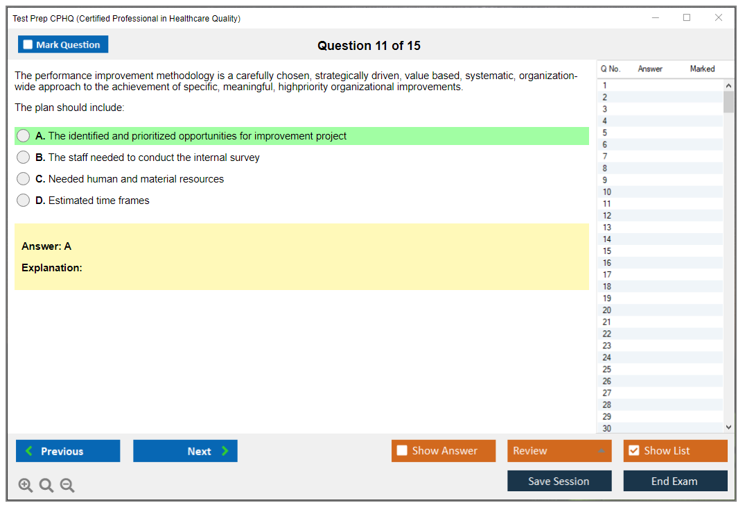 Impressed with DumpsBoss for CPHQ Exam preparation. The website is user-friendly, and the study resources are top-notch. Thanks to DumpsBoss, I passed with ease!
