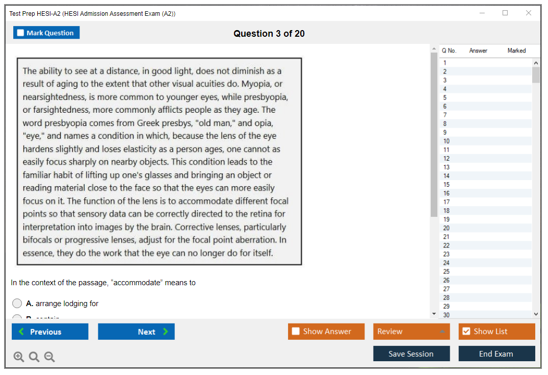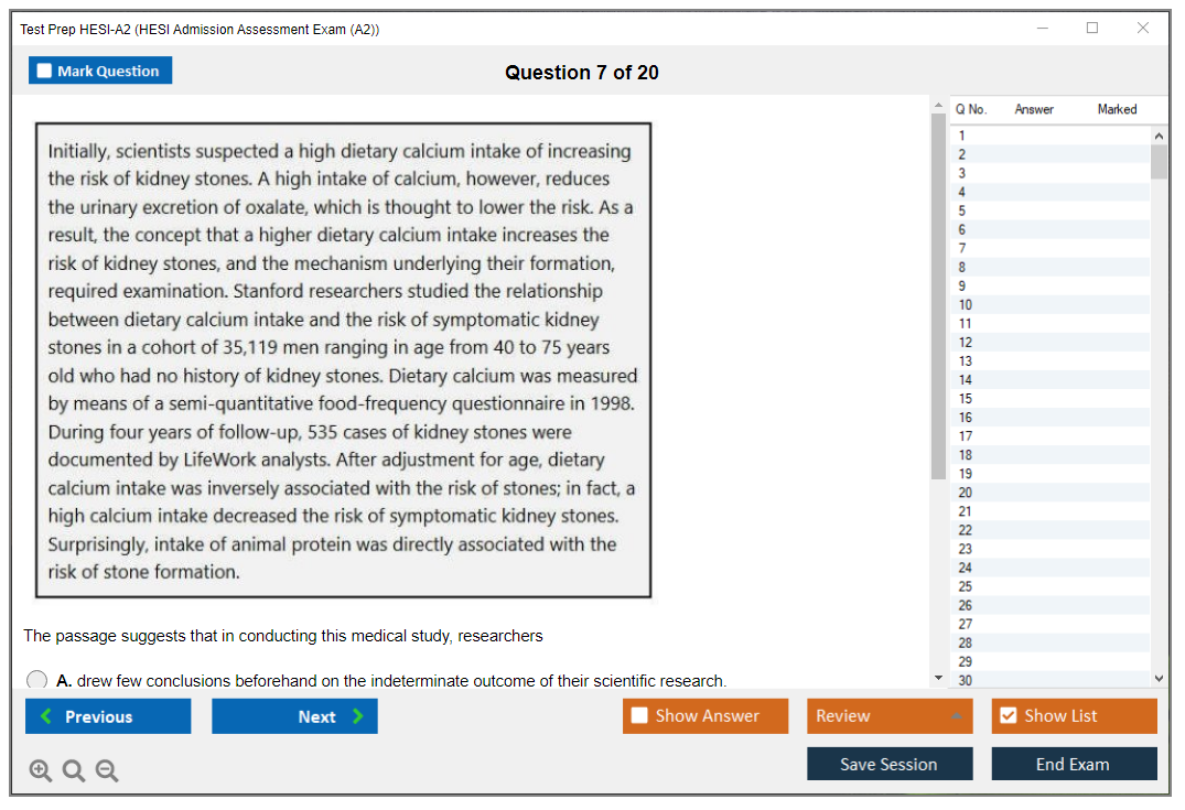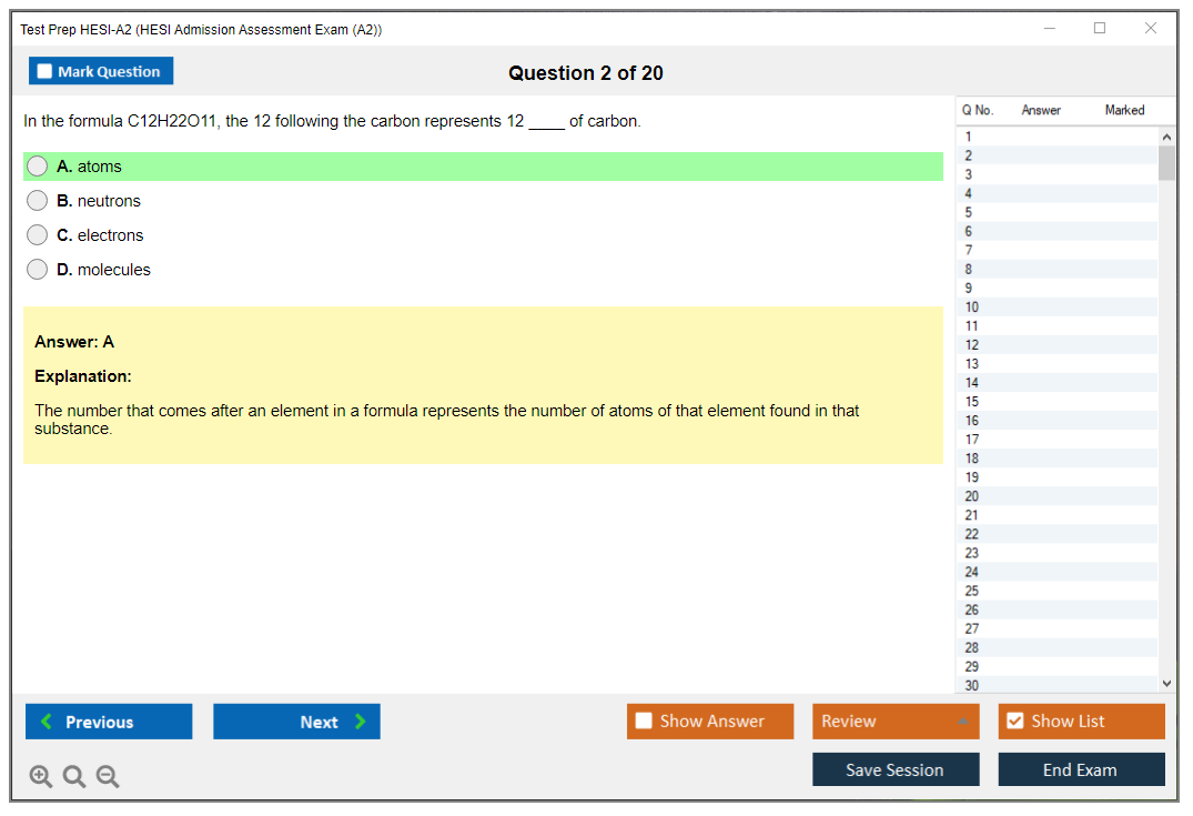 What is the Question Format of Test Prep HESI-A2 Exam?