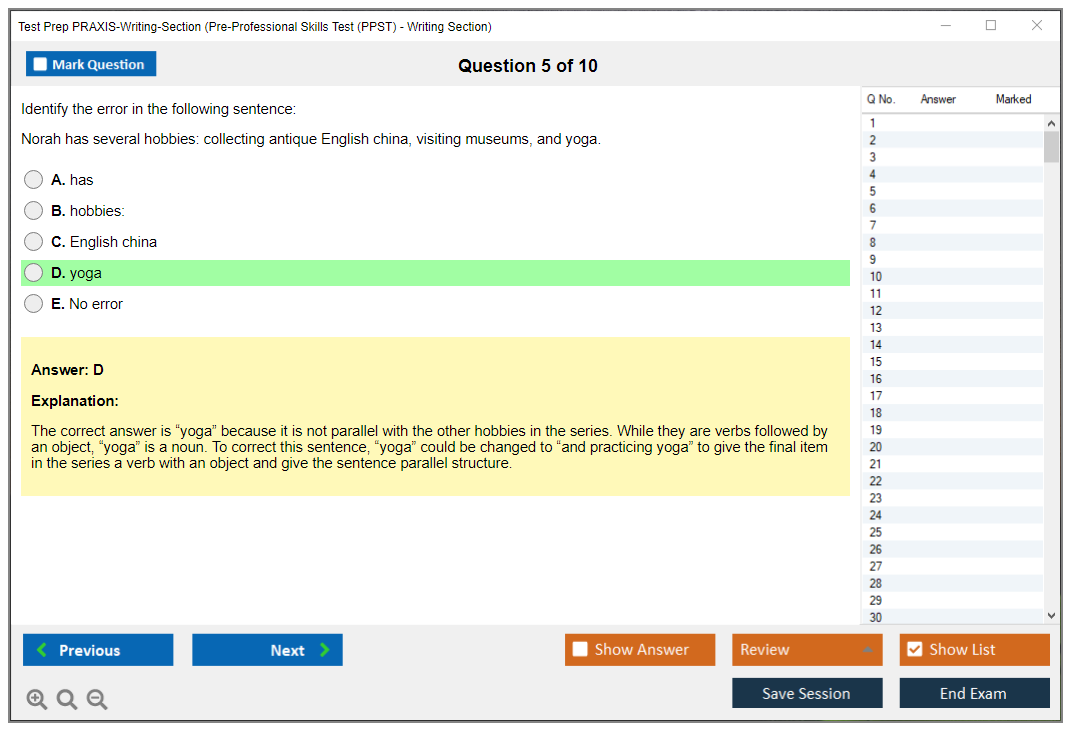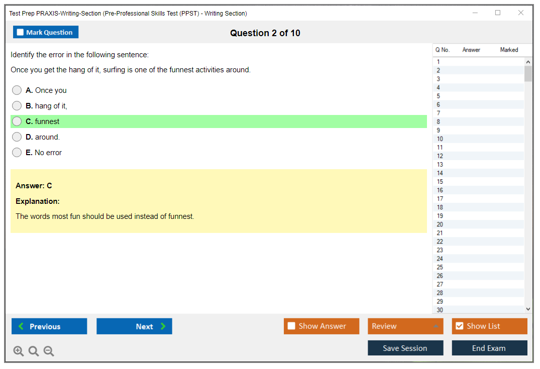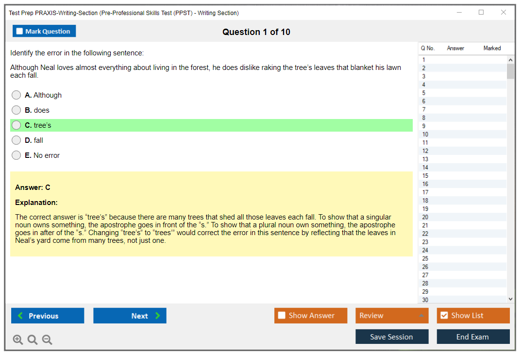 What are the Sample Questions of Test Prep PRAXIS-Writing-Section Exam?