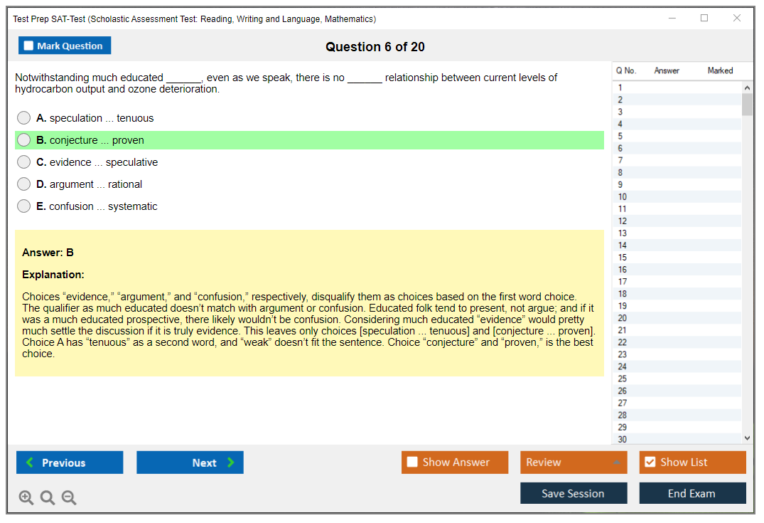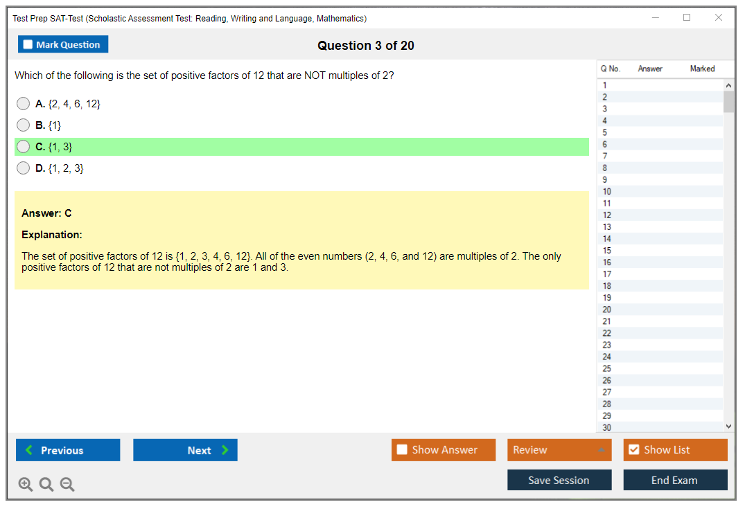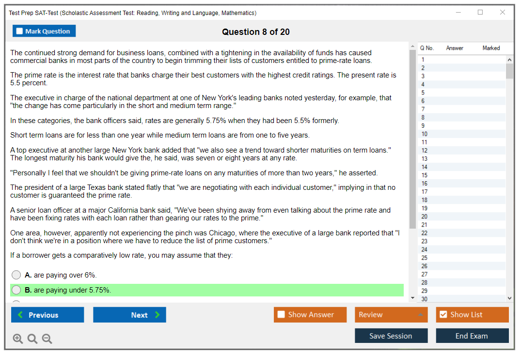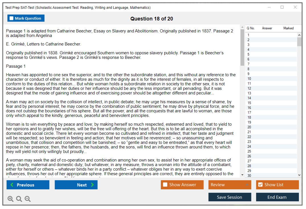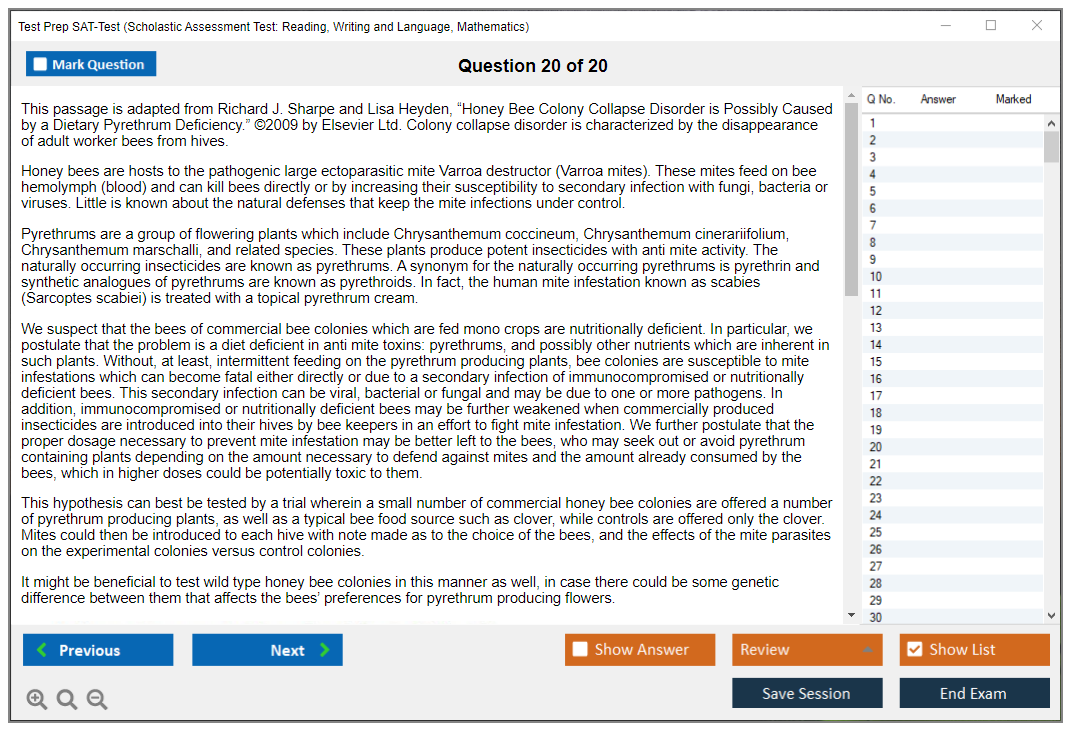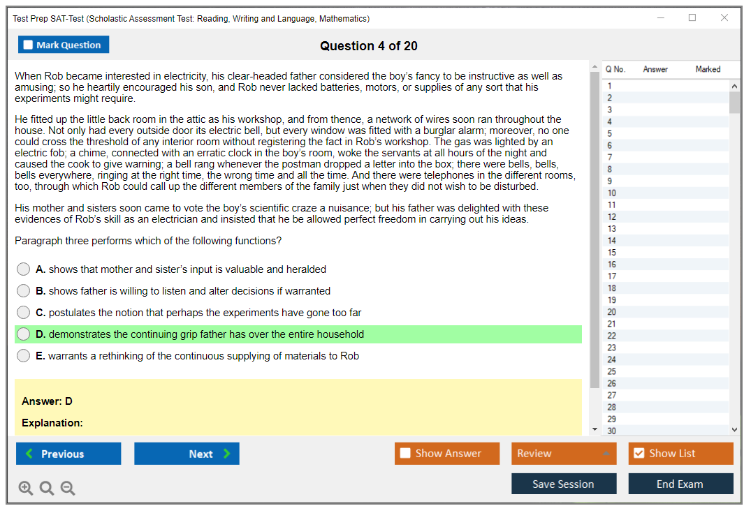 What are the Sample Questions of Test Prep SAT-Test Exam?