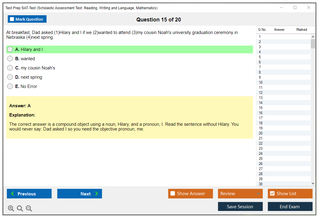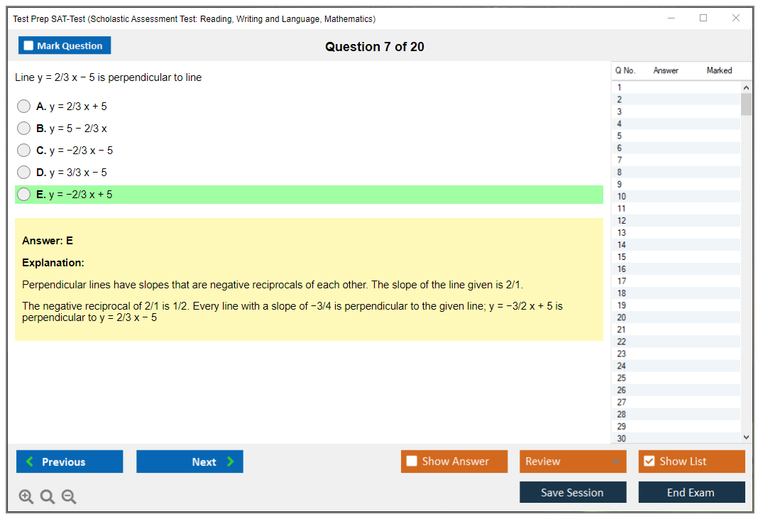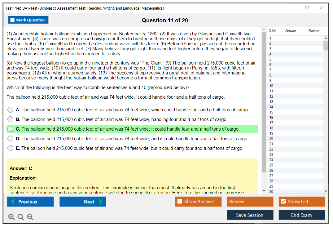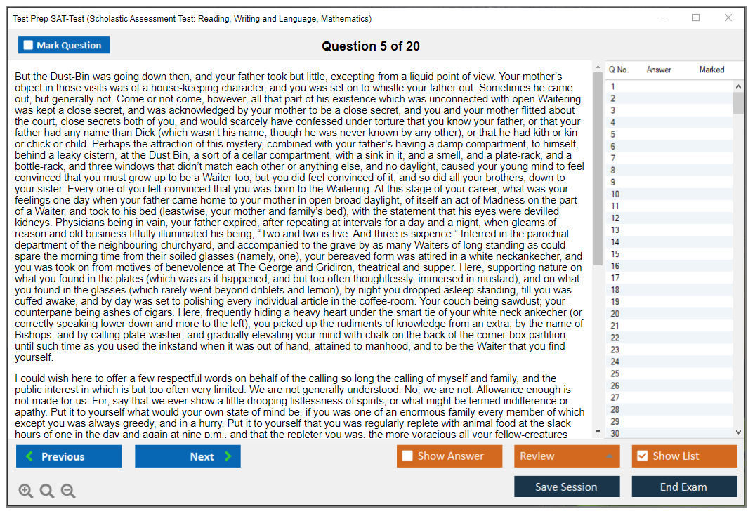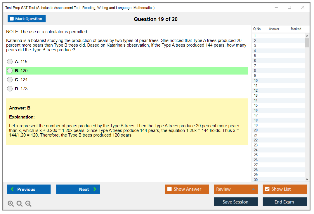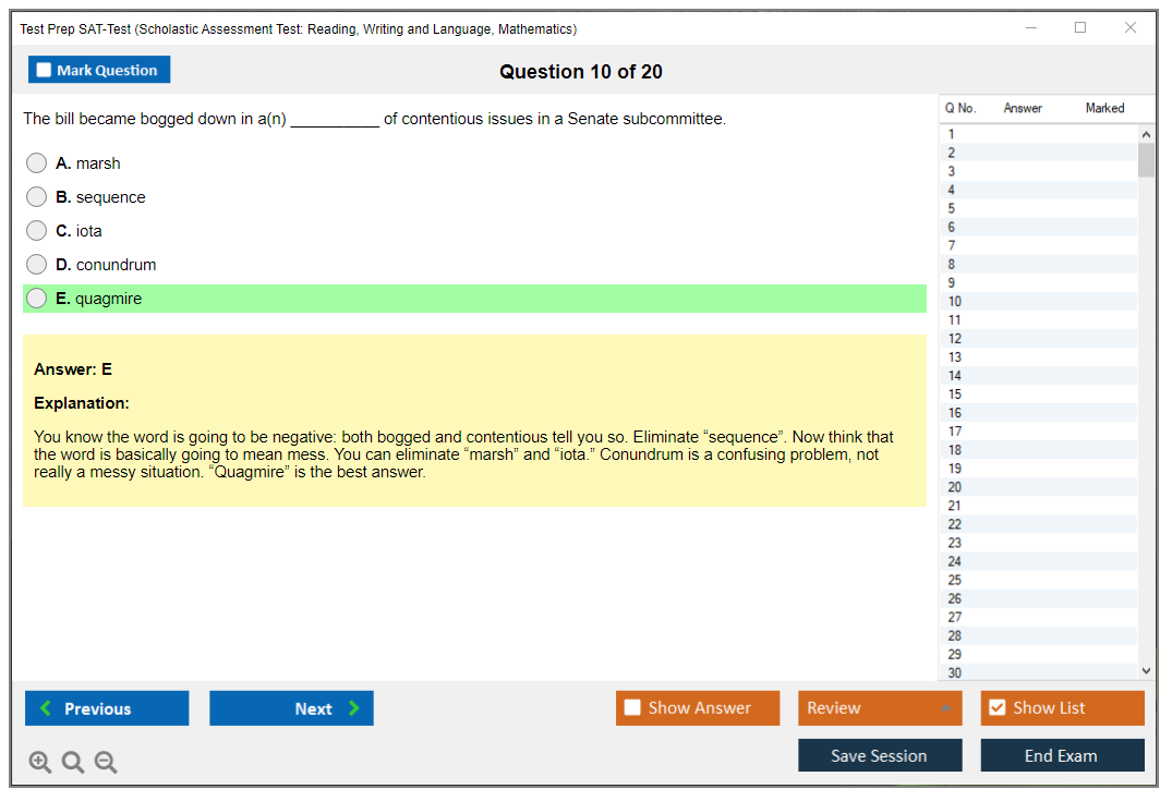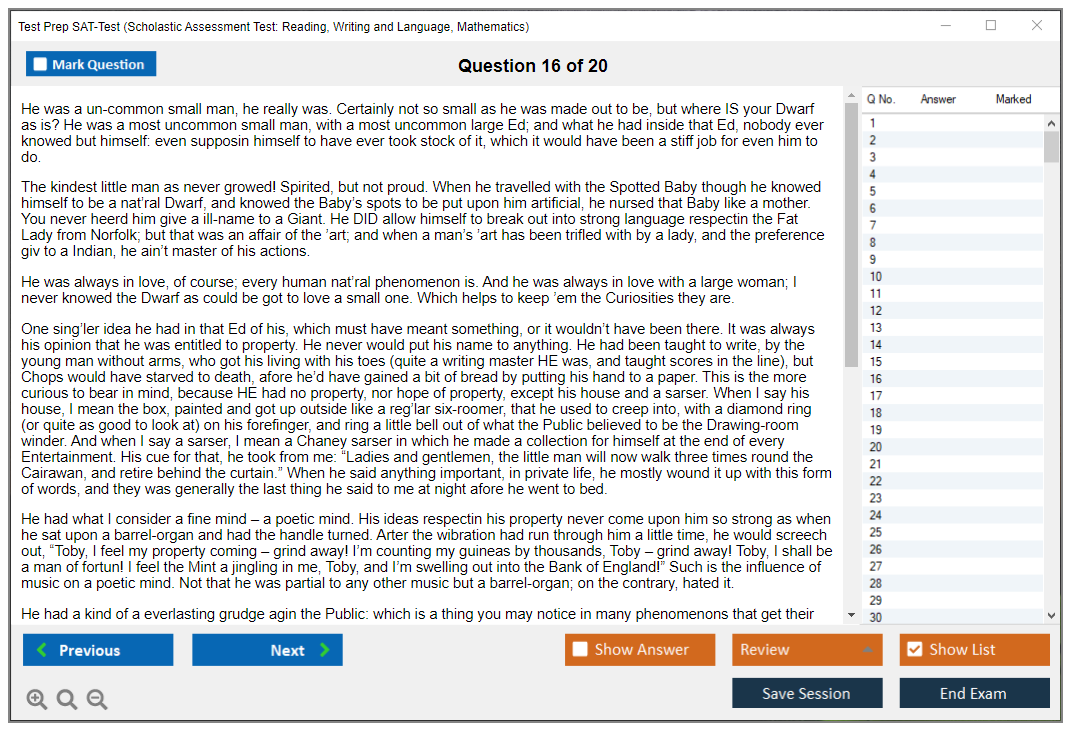 What are the Sample Questions of Test Prep SAT-Test Exam?