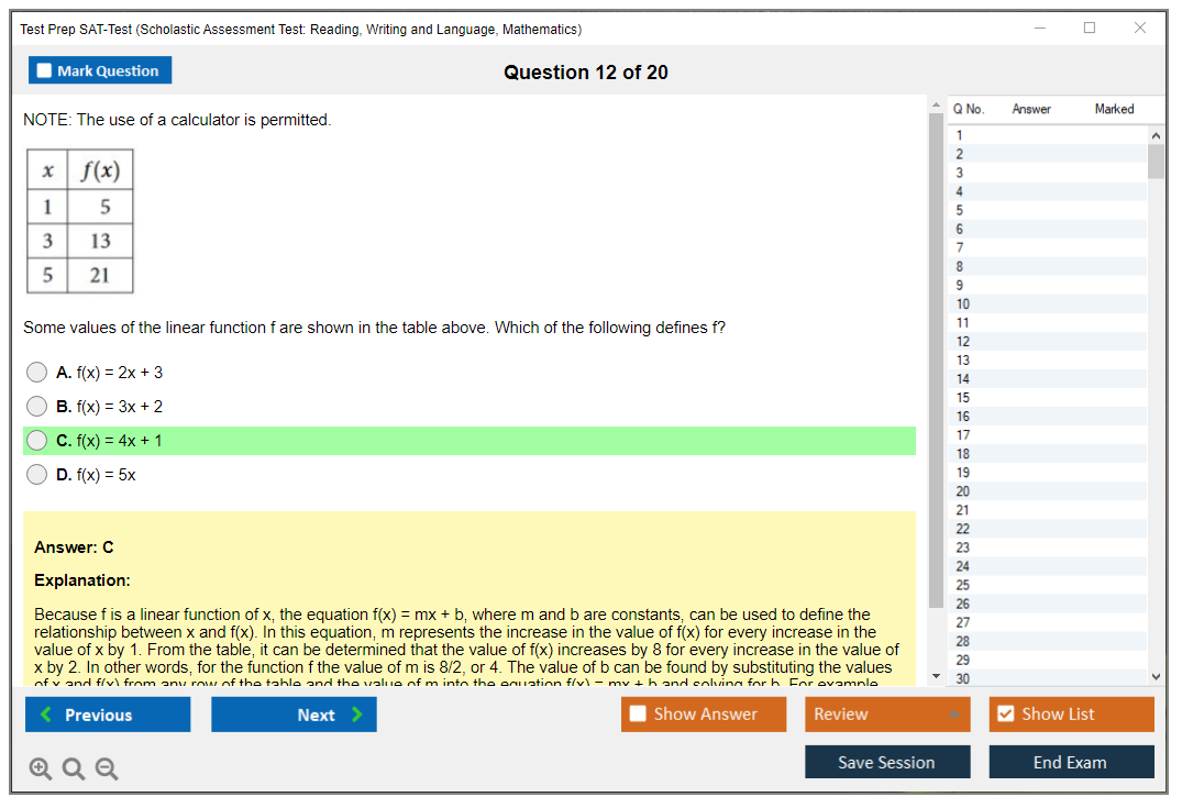 What is the Question Format of Test Prep SAT-Test Exam?