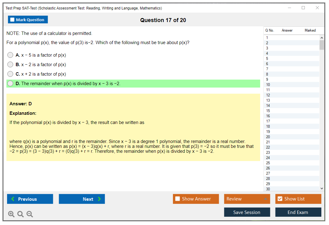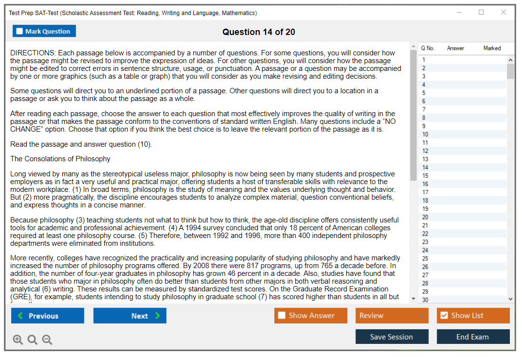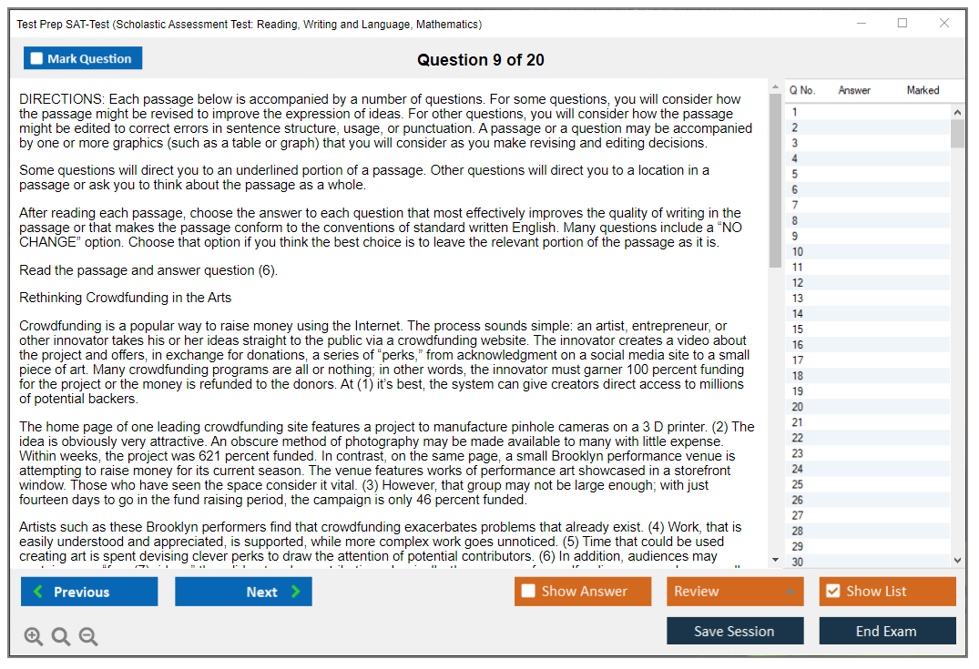 What are the Number of Questions Asked in Test Prep SAT-Test Exam?
