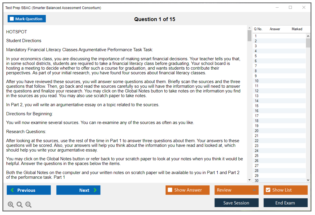 SBAC (Smarter Balanced Assessment Consortium) PDF + Test Engine
