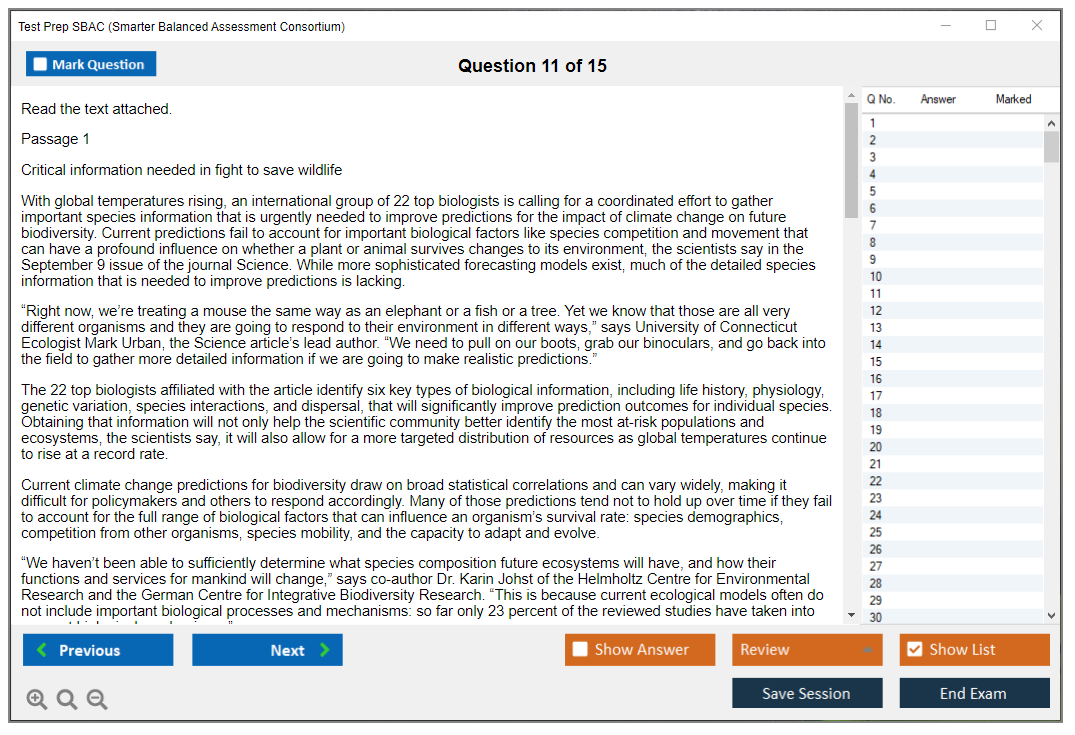 What are the Number of Questions Asked in Test Prep SBAC Exam?