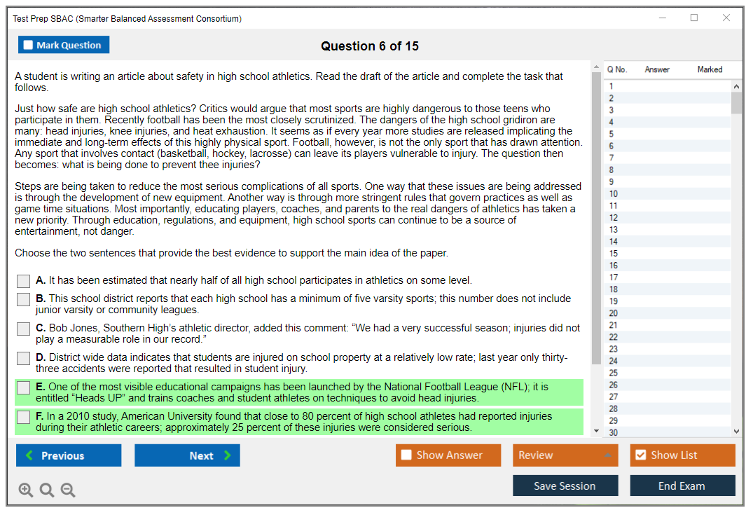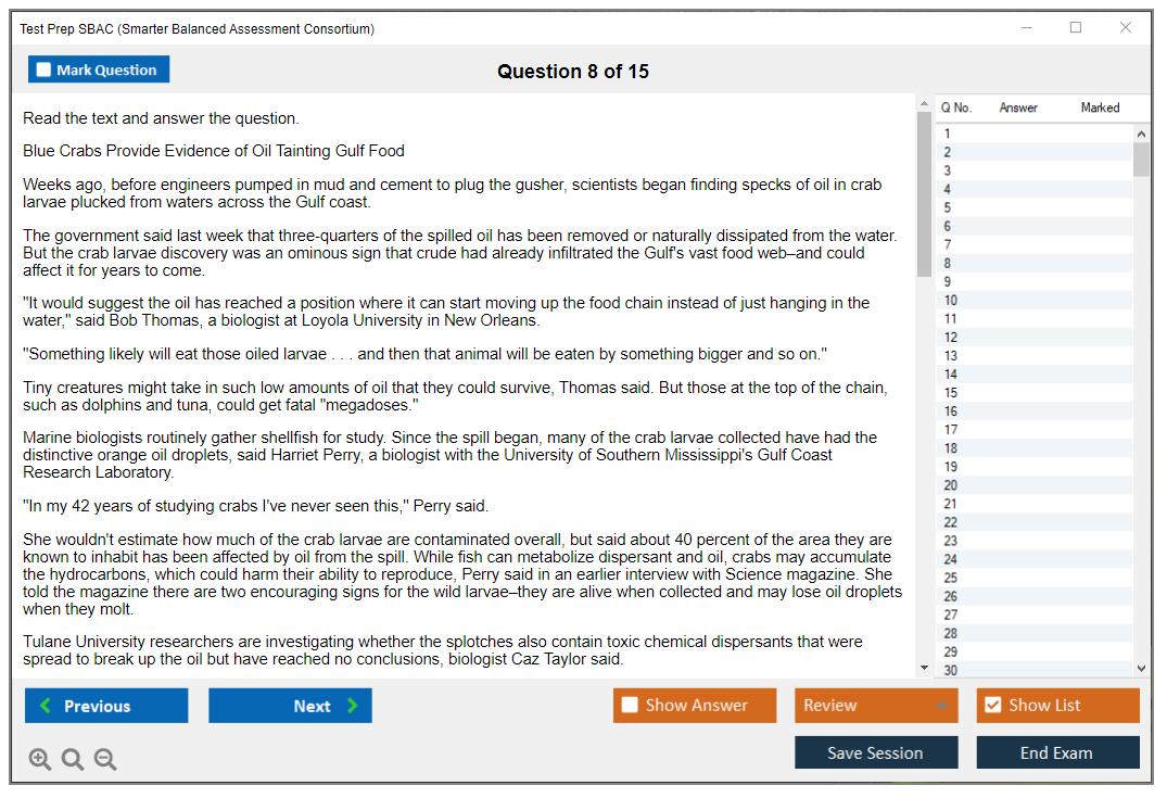 What are the Sample Questions of Test Prep SBAC Exam?