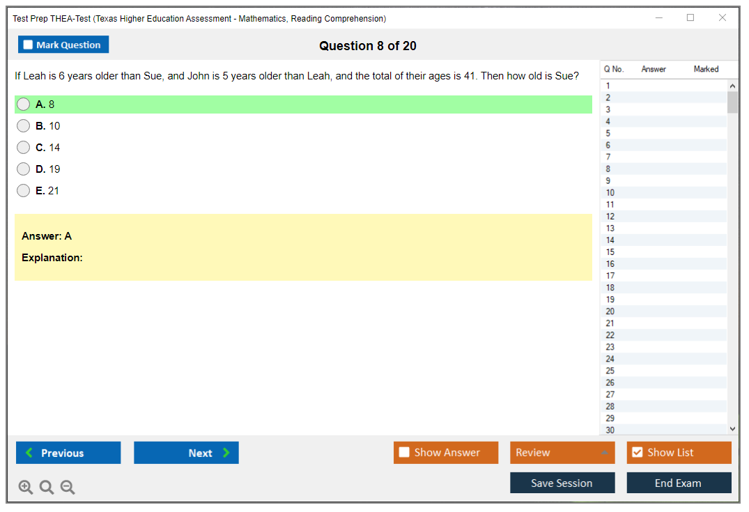 What is the Question Format of Test Prep THEA-Test Exam?