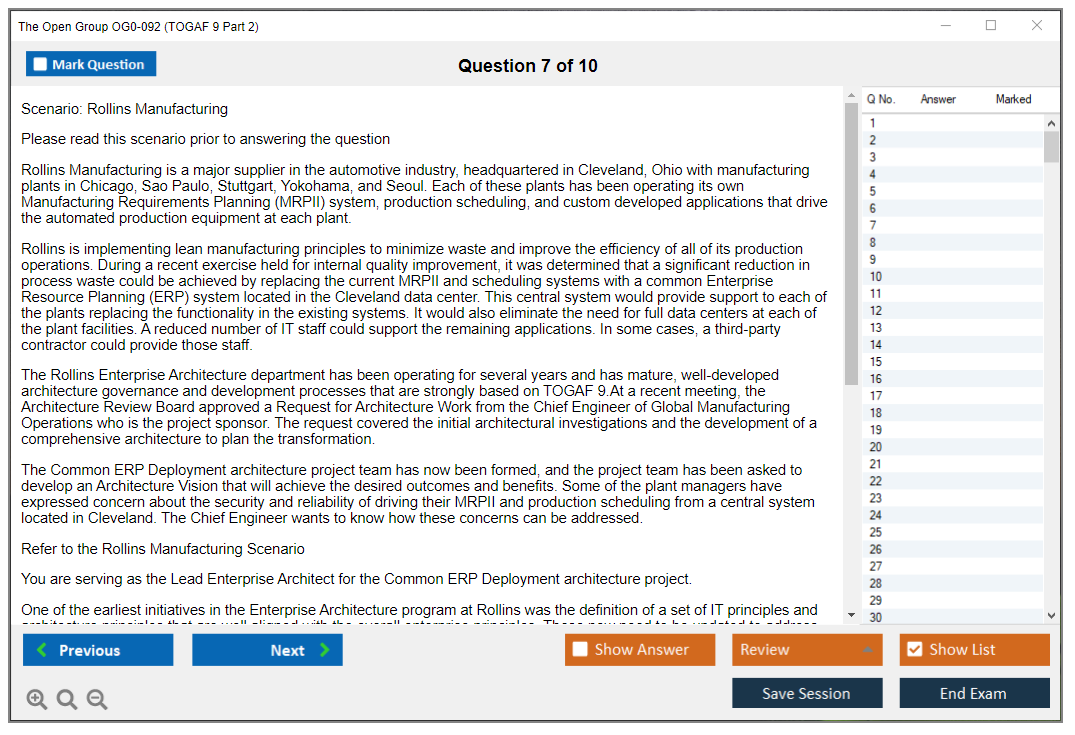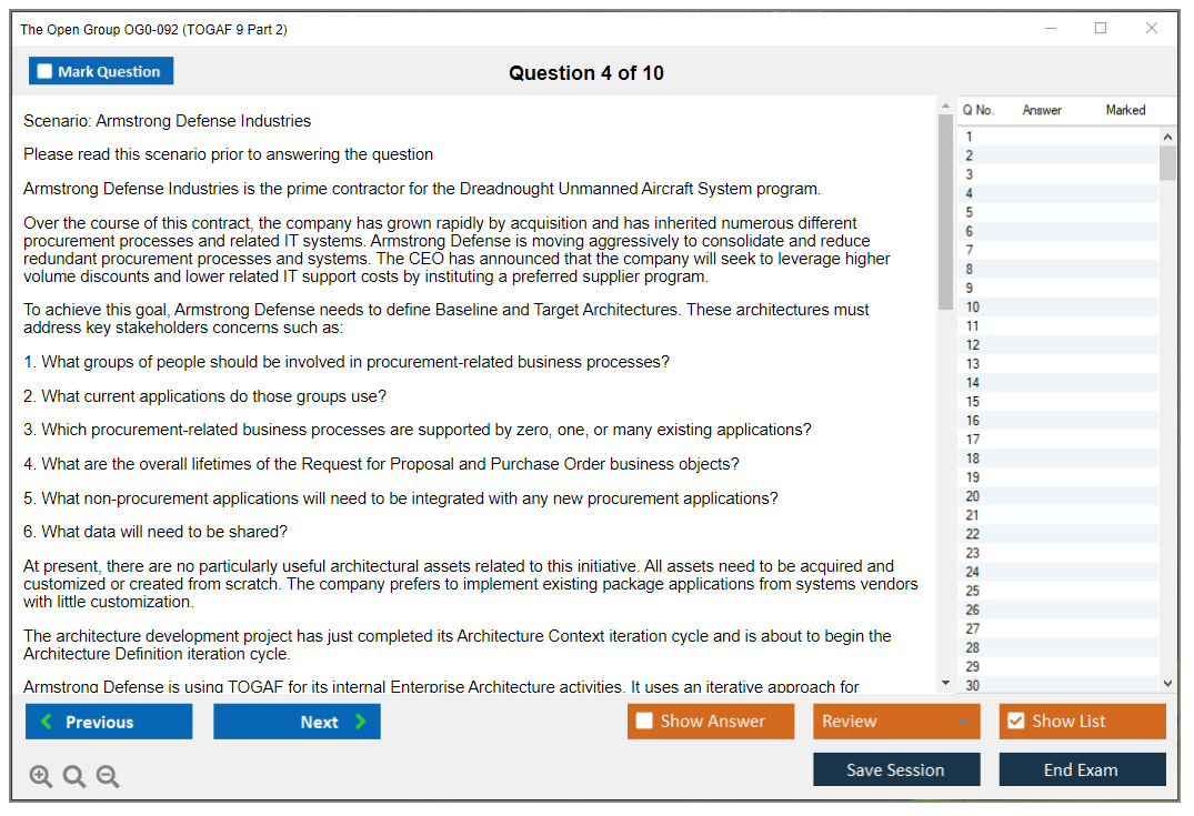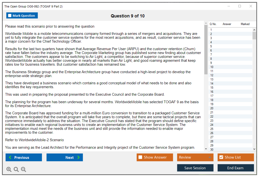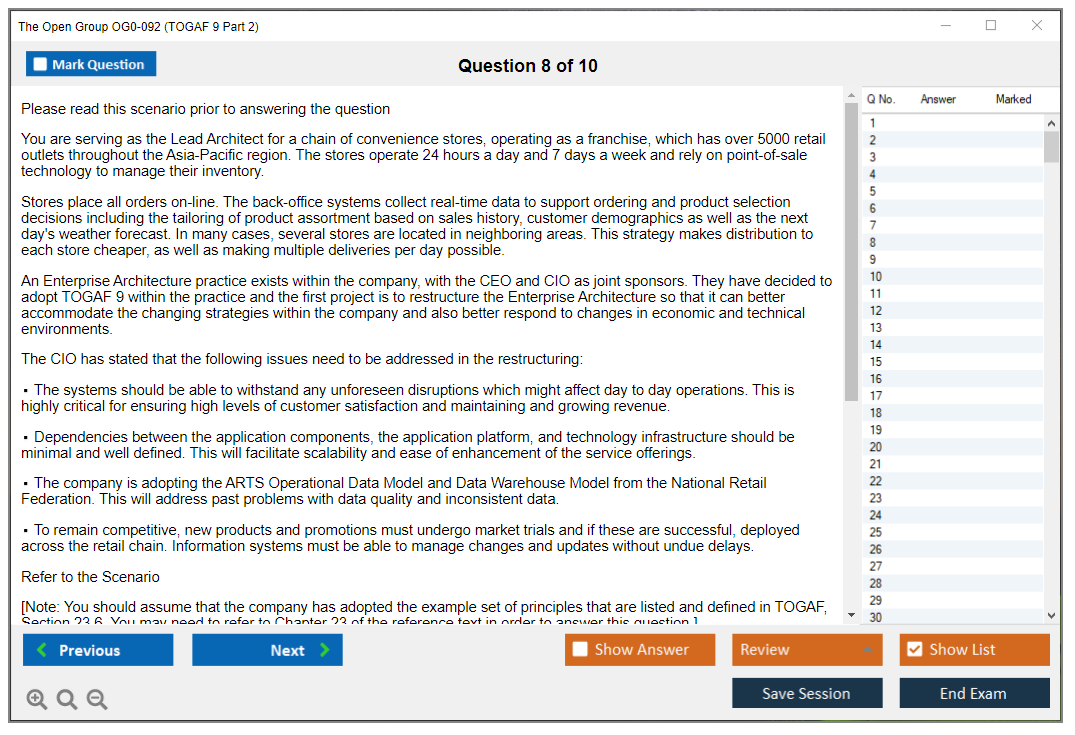 The Open Group OG0-092 Exam consists of 8 complex scenario-based questions.