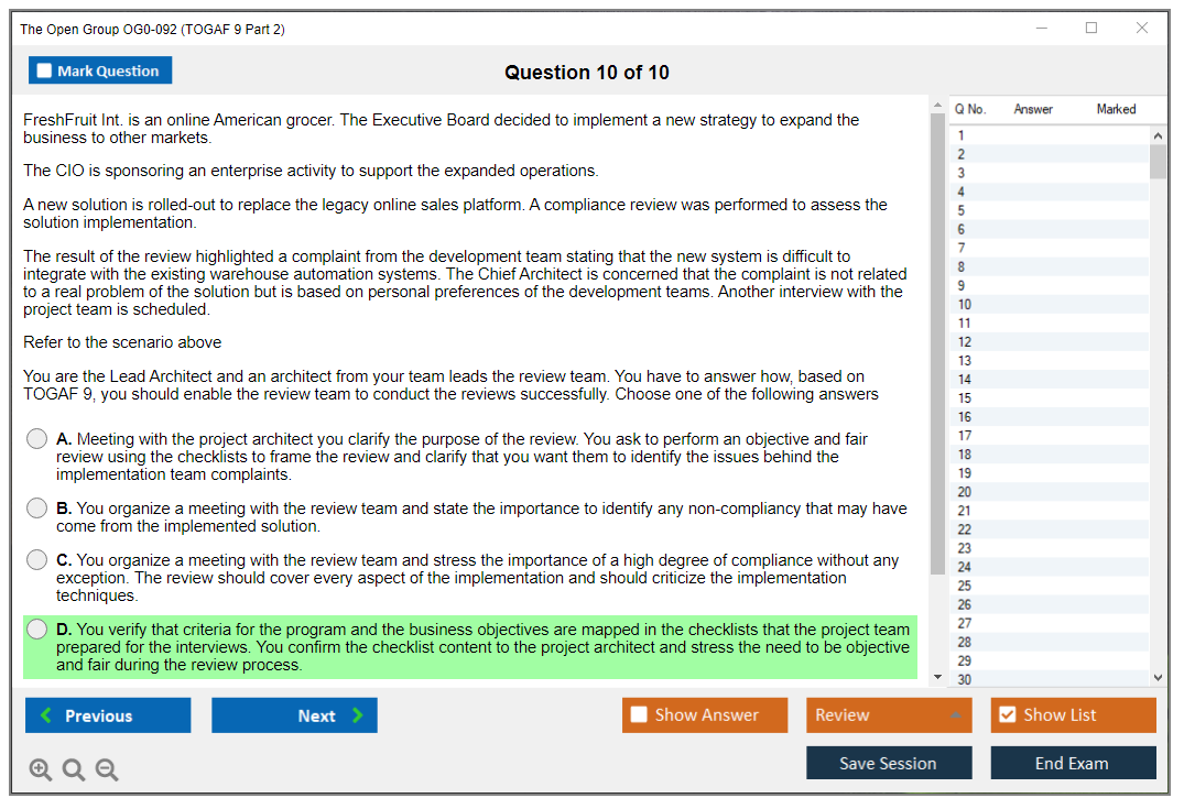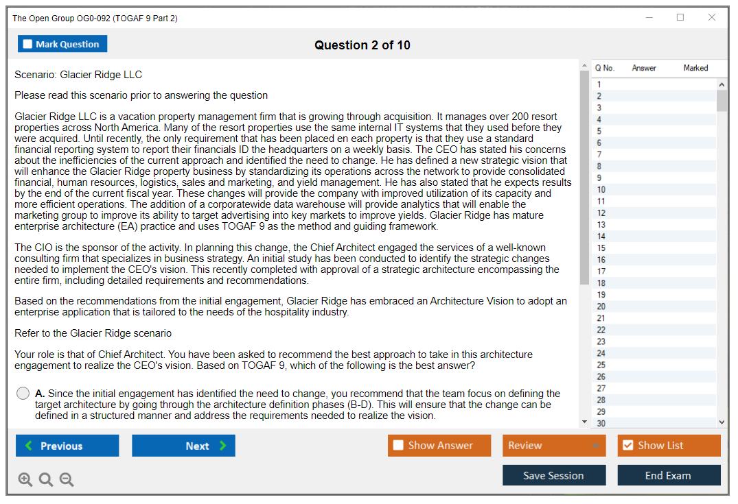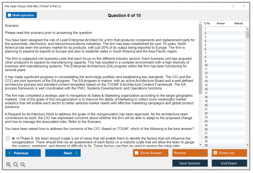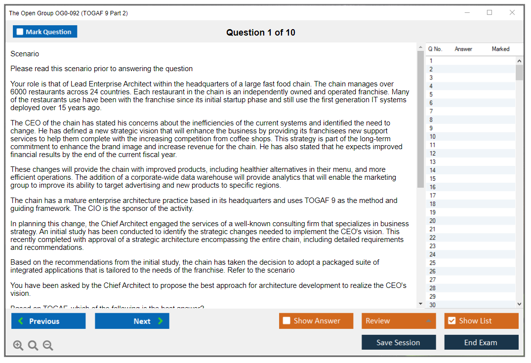 The question format of The Open Group OG0-092 Exam is scenario-based, with complex multiple-choice questions.