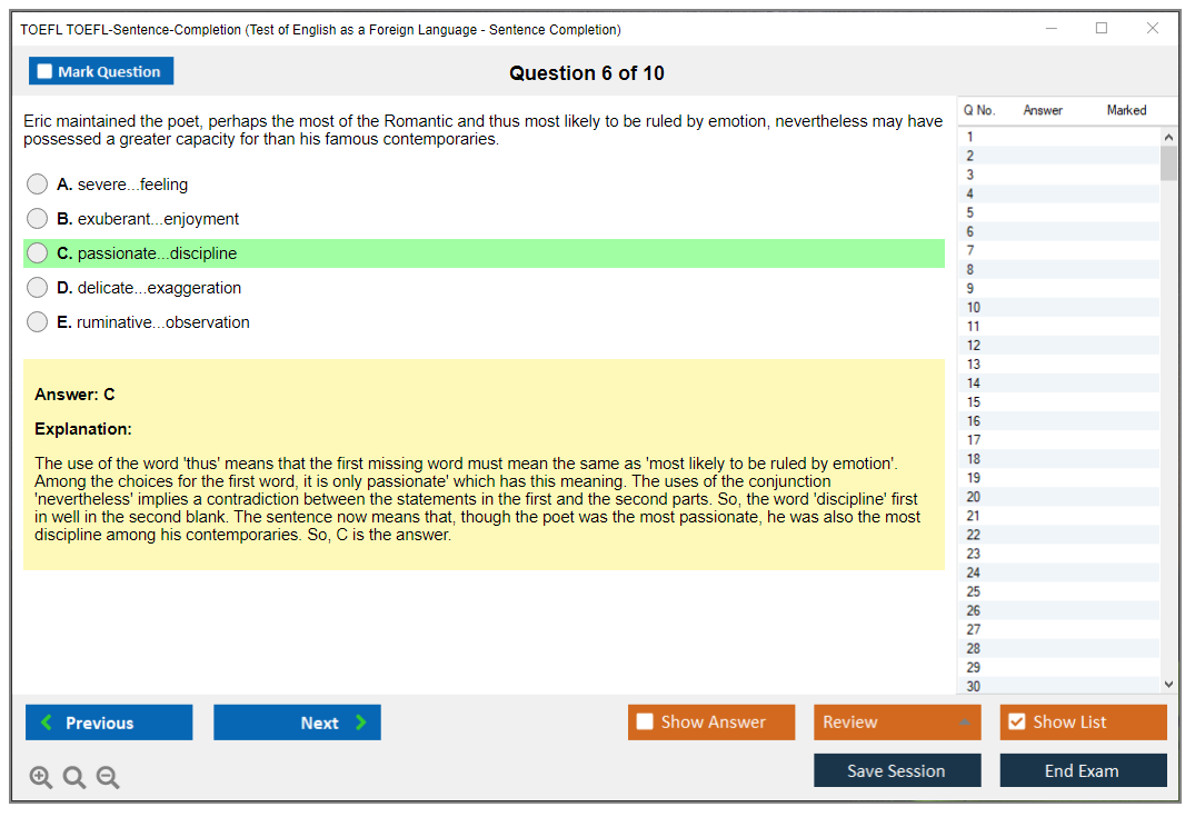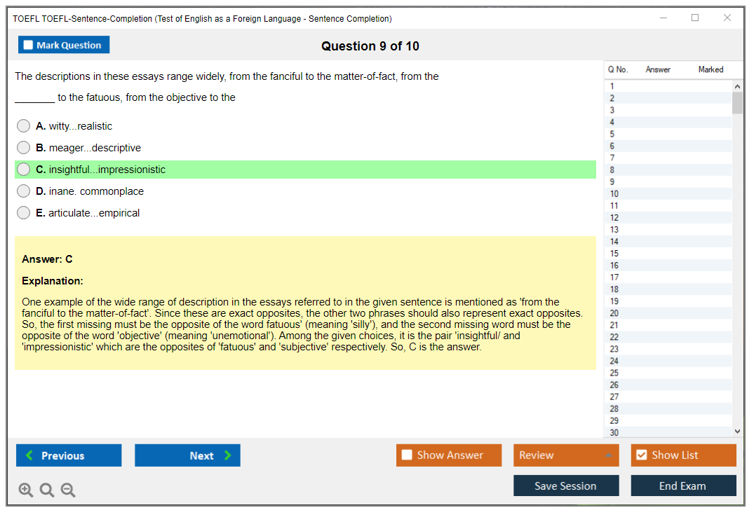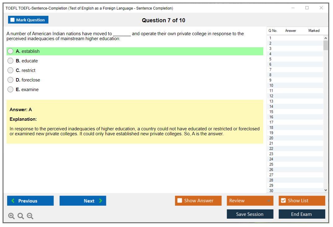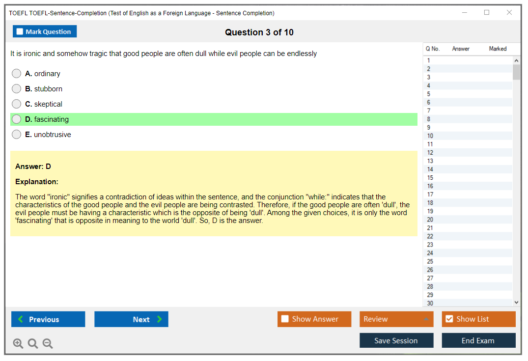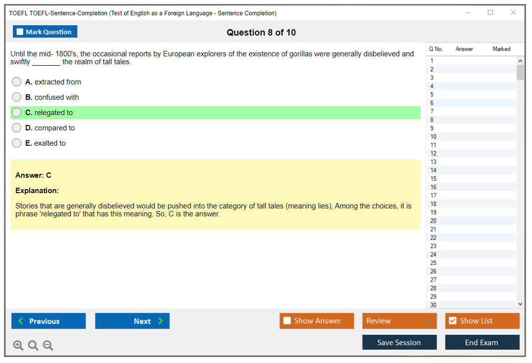 TOEFL-Sentence-Completion (Test of English as a Foreign Language - Sentence Completion) PDF + Test Engine