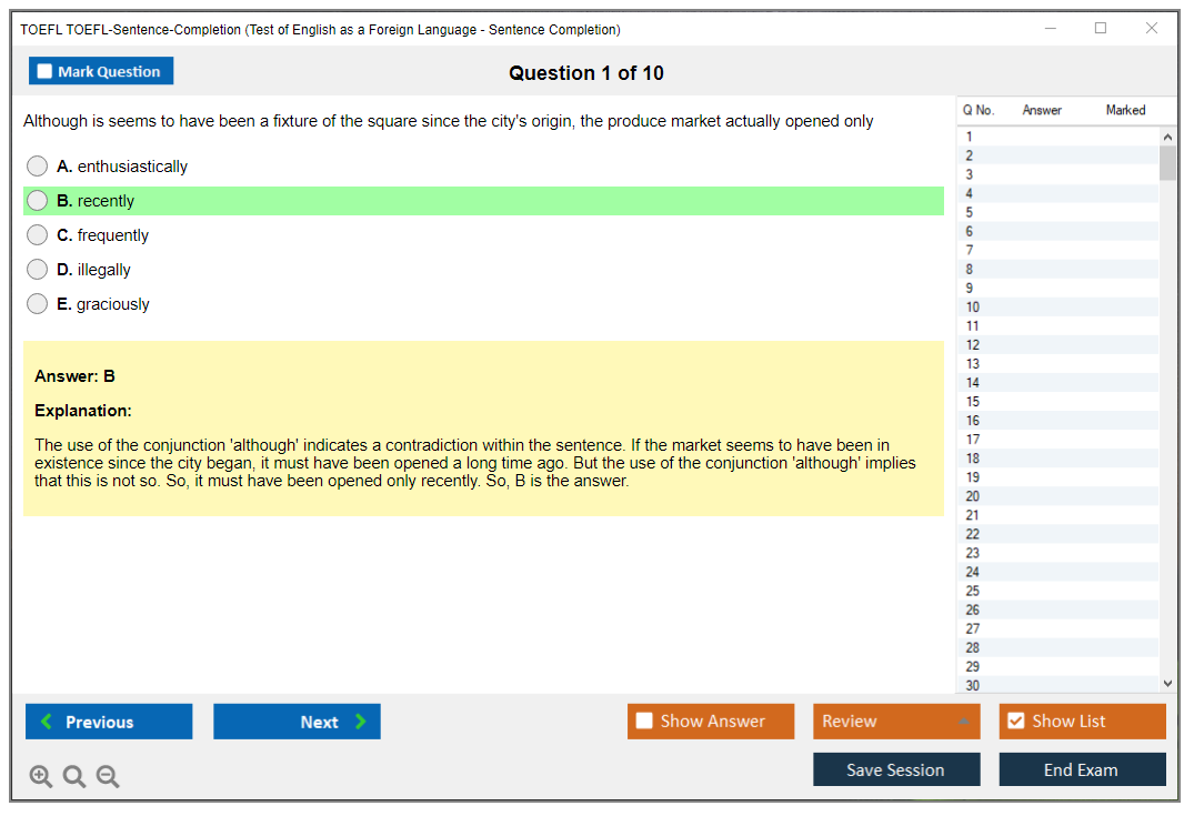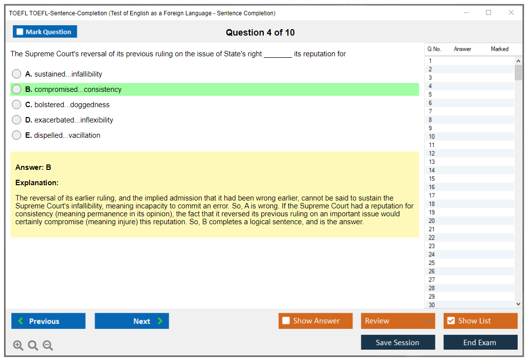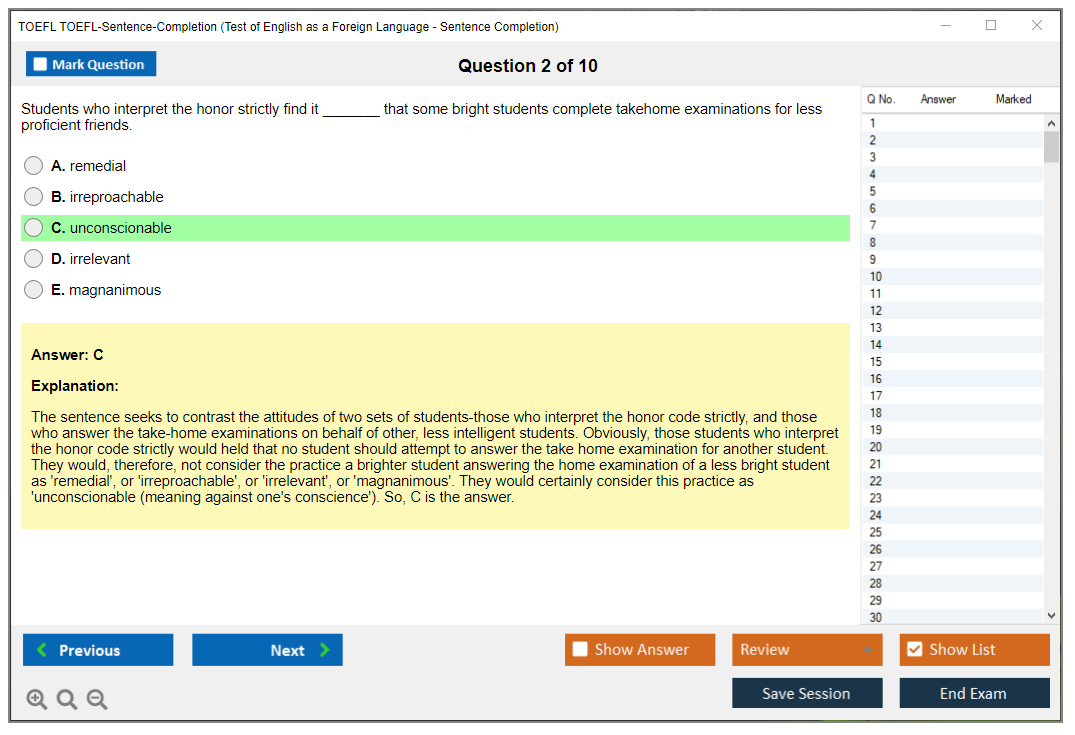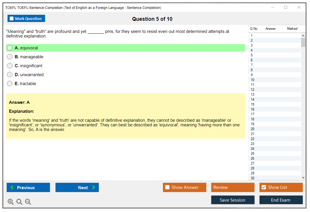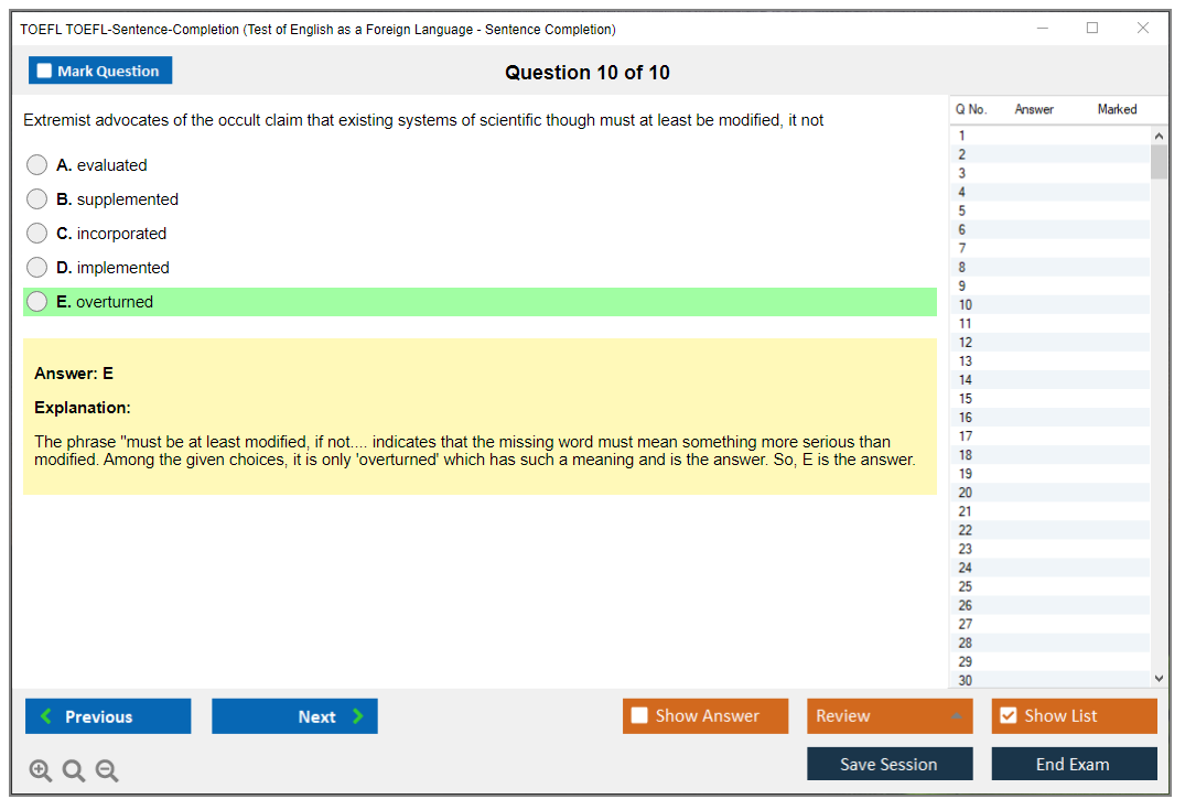 TOEFL-Sentence-Completion (Test of English as a Foreign Language - Sentence Completion) PDF + Test Engine