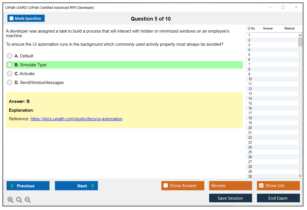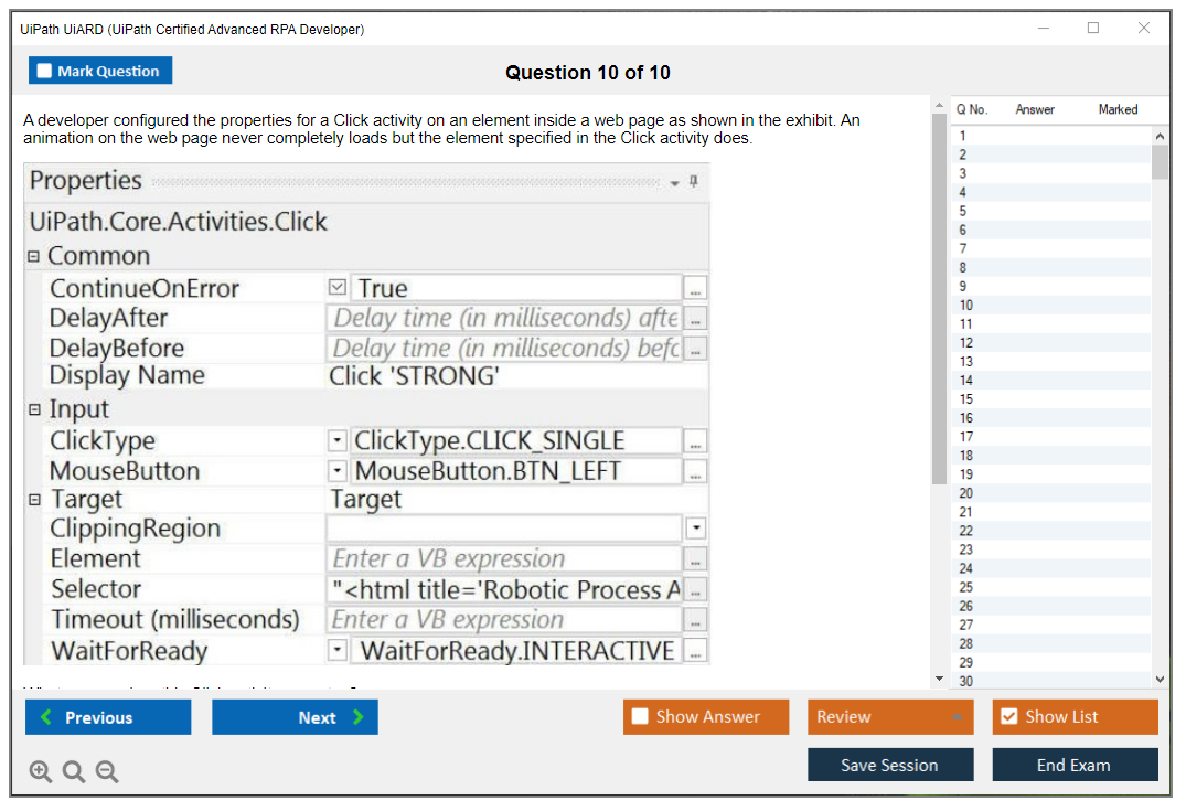 Sample questions for the UiPath UiARD Exam can be found on the UiPath website and through various online RPA communities and forums.