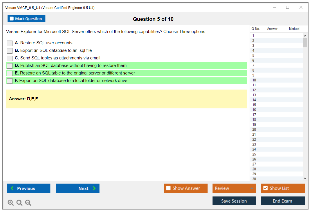 The Veeam VMCE_9.5_U4 (Veeam Certified Engineer 9.5 U4) Exam is a certification test designed to validate the skills and knowledge of IT professionals in using Veeam's backup, recovery, and replication software. It focuses on the 9.5 Update 4 version of Veeam's software.