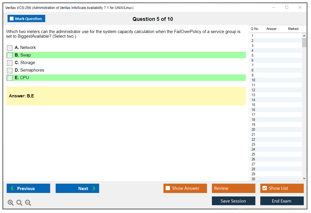 Sample questions for the Veritas VCS-256 exam can be found in the official study guides and practice exams provided by Veritas and other third-party resources.